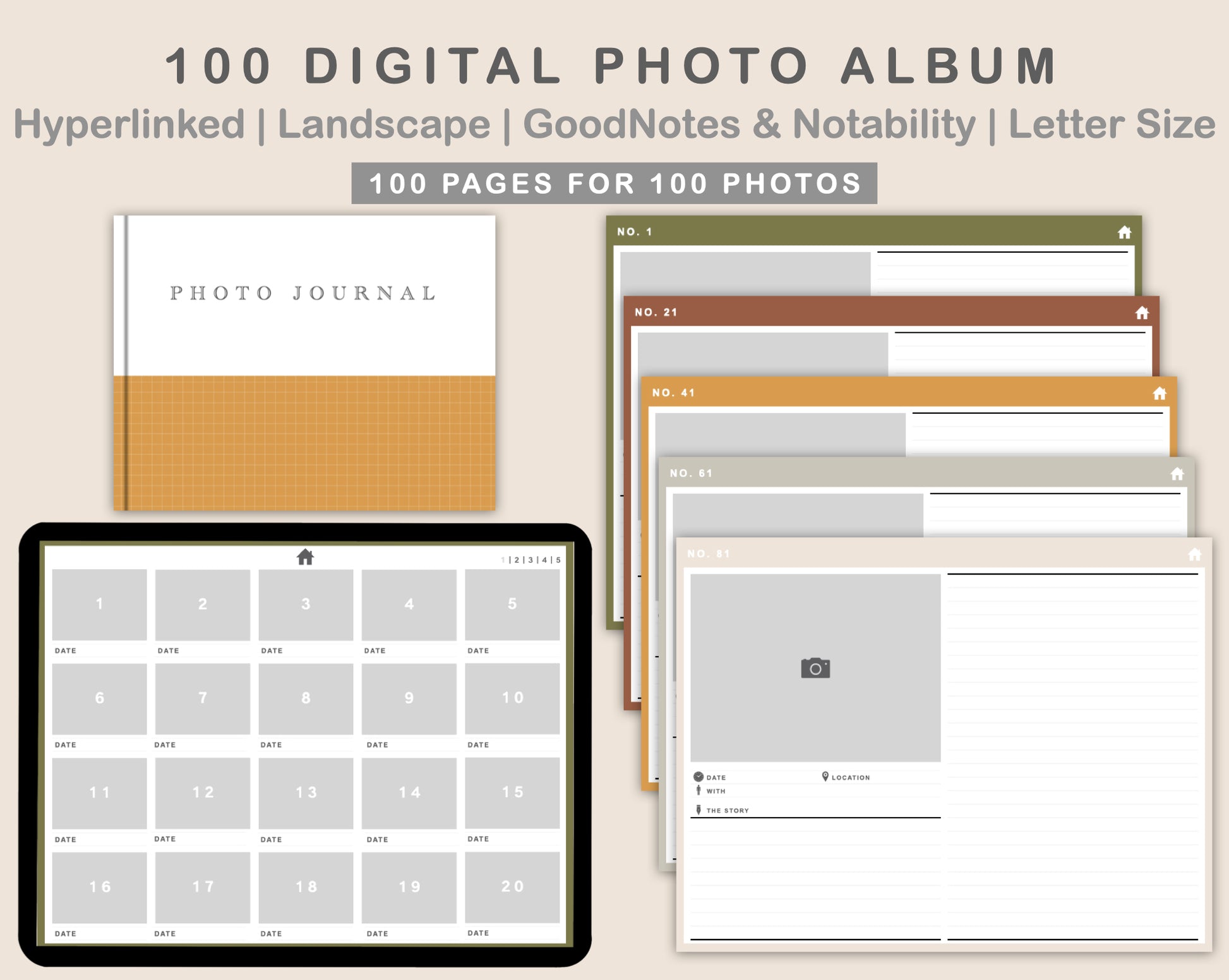 This 100 Digital Photo Album is made in BOHO theme to help you keep your memory in one place. It is designed in landscape orientation (Horizontal) for pdf-annotating apps like Goodnotes 5, Noteshelf, Notability, Xodo, and others.