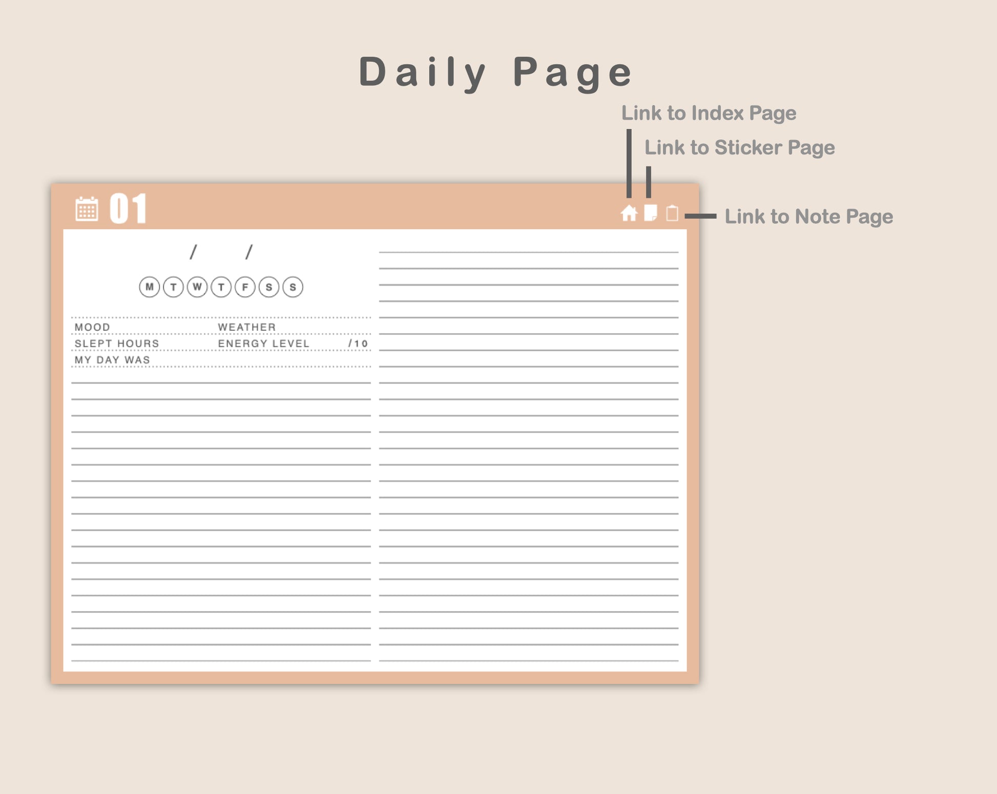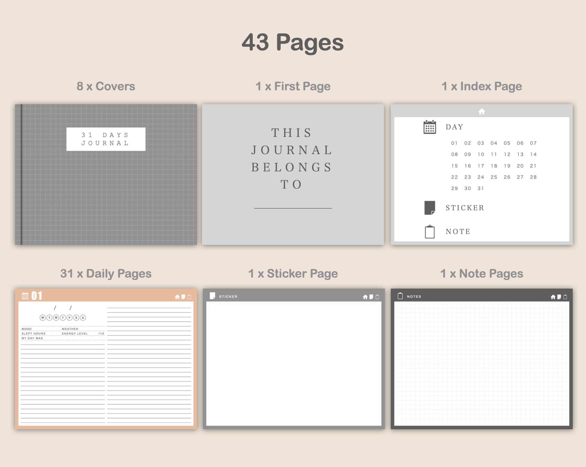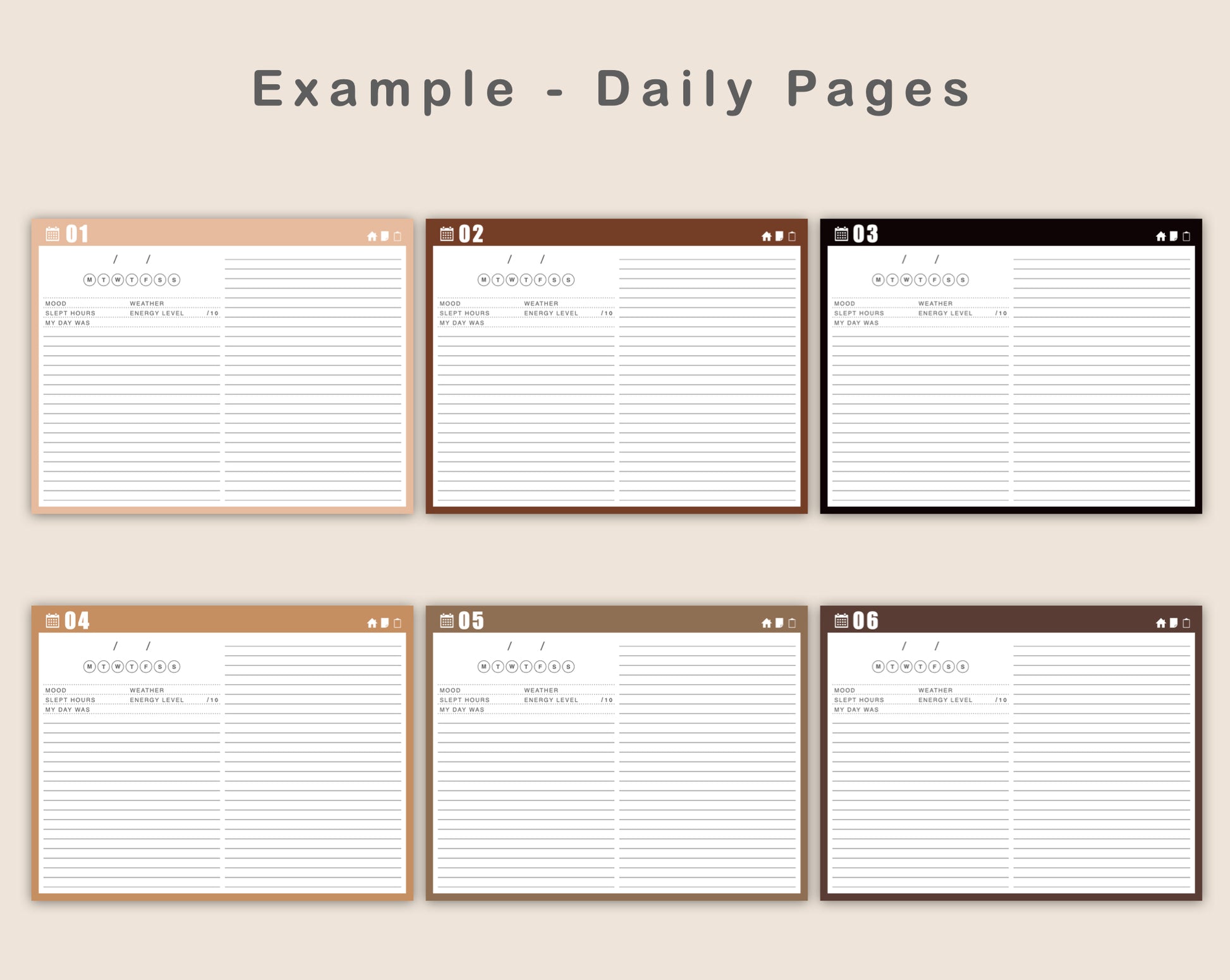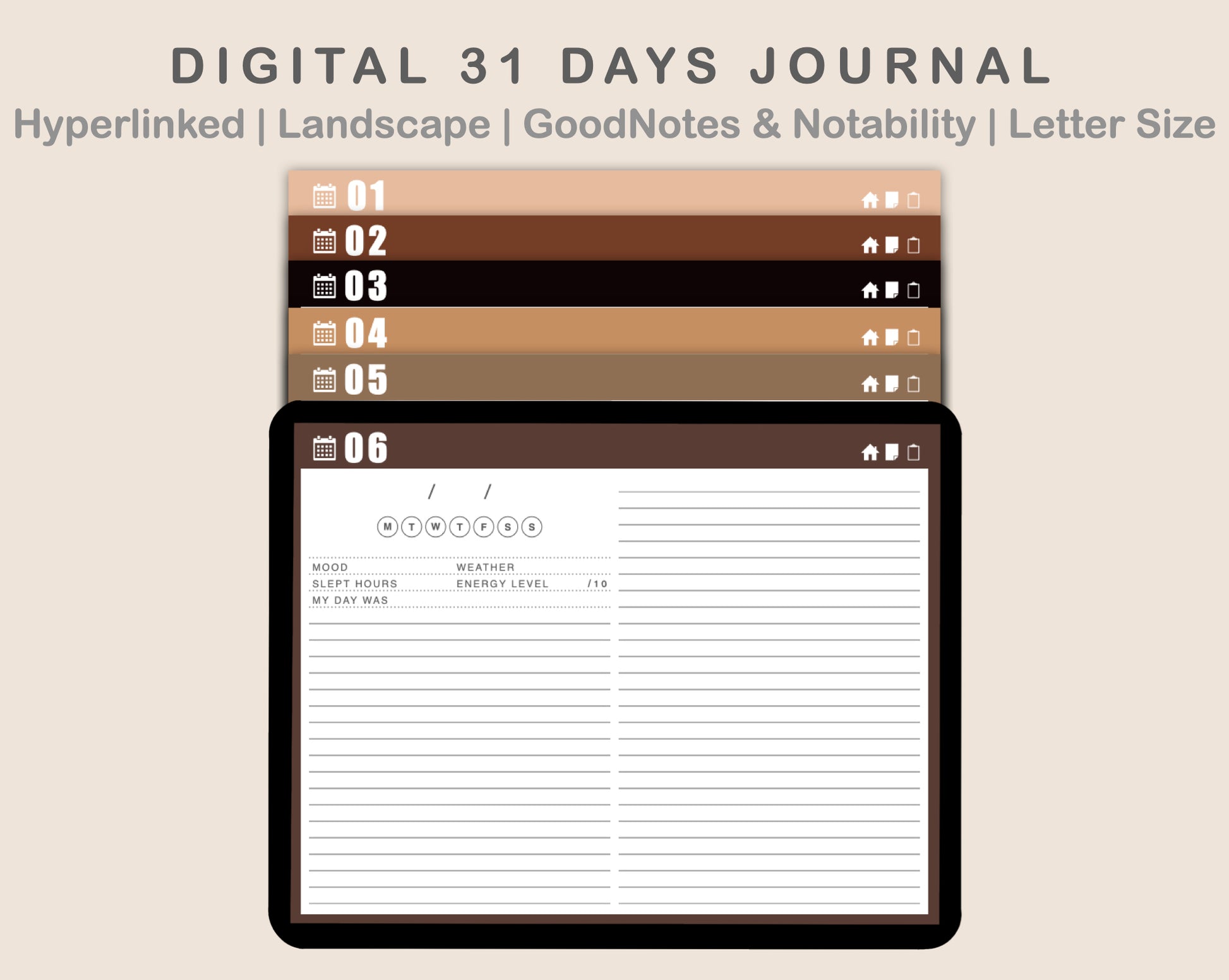 This Daily Journal, 31 Day Journal in BROWN COFFEE theme is made to record your daily emotions and activities. It is designed in landscape orientation for pdf-annotating apps like Goodnotes 5, Noteshelf, Notability, Xodo, and others.