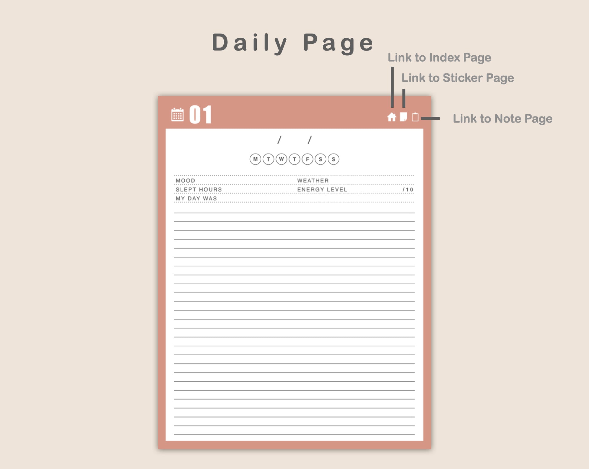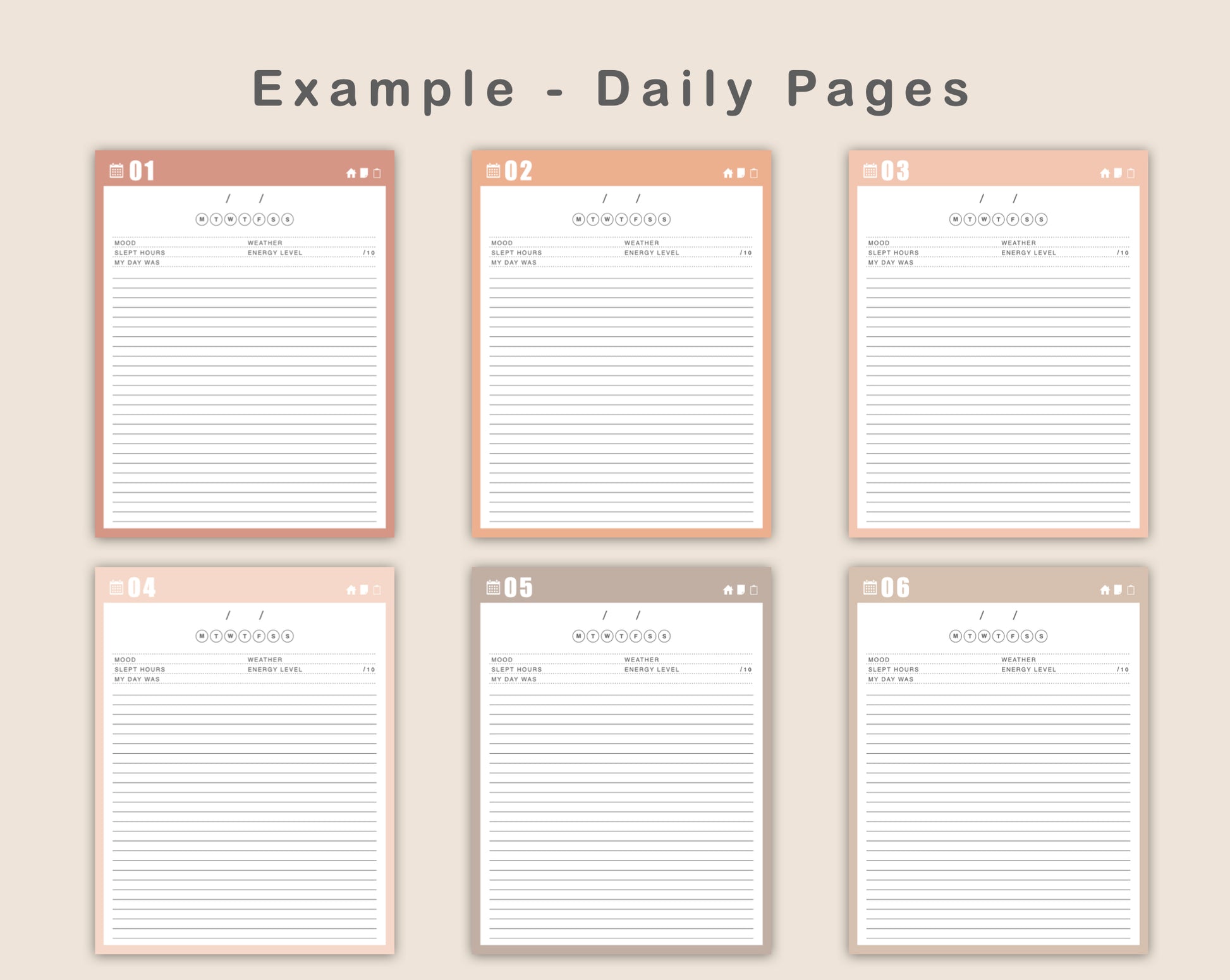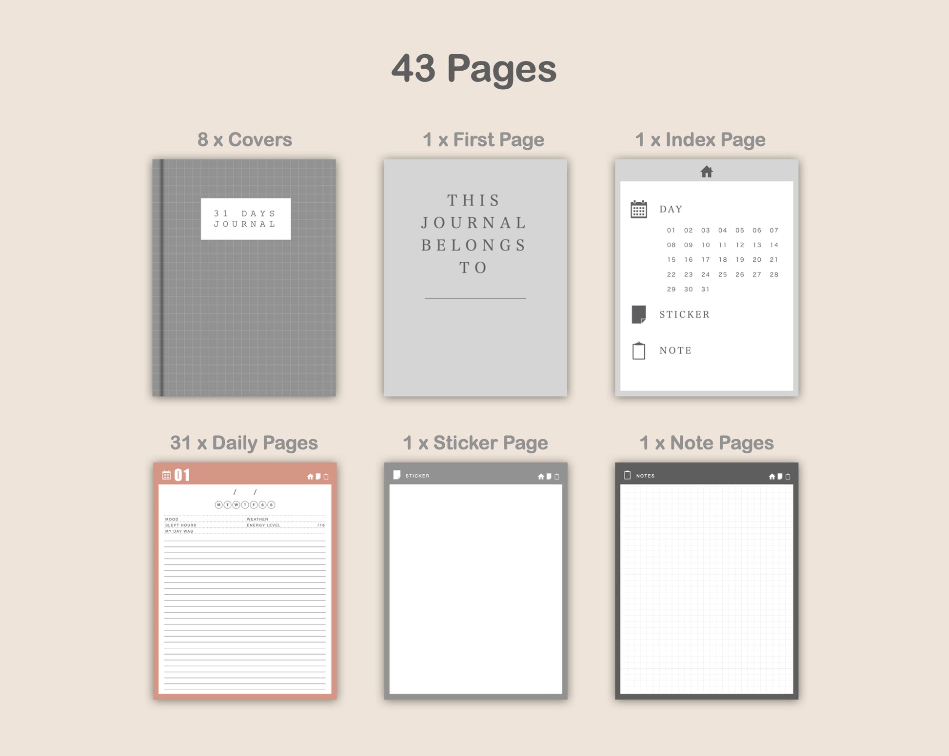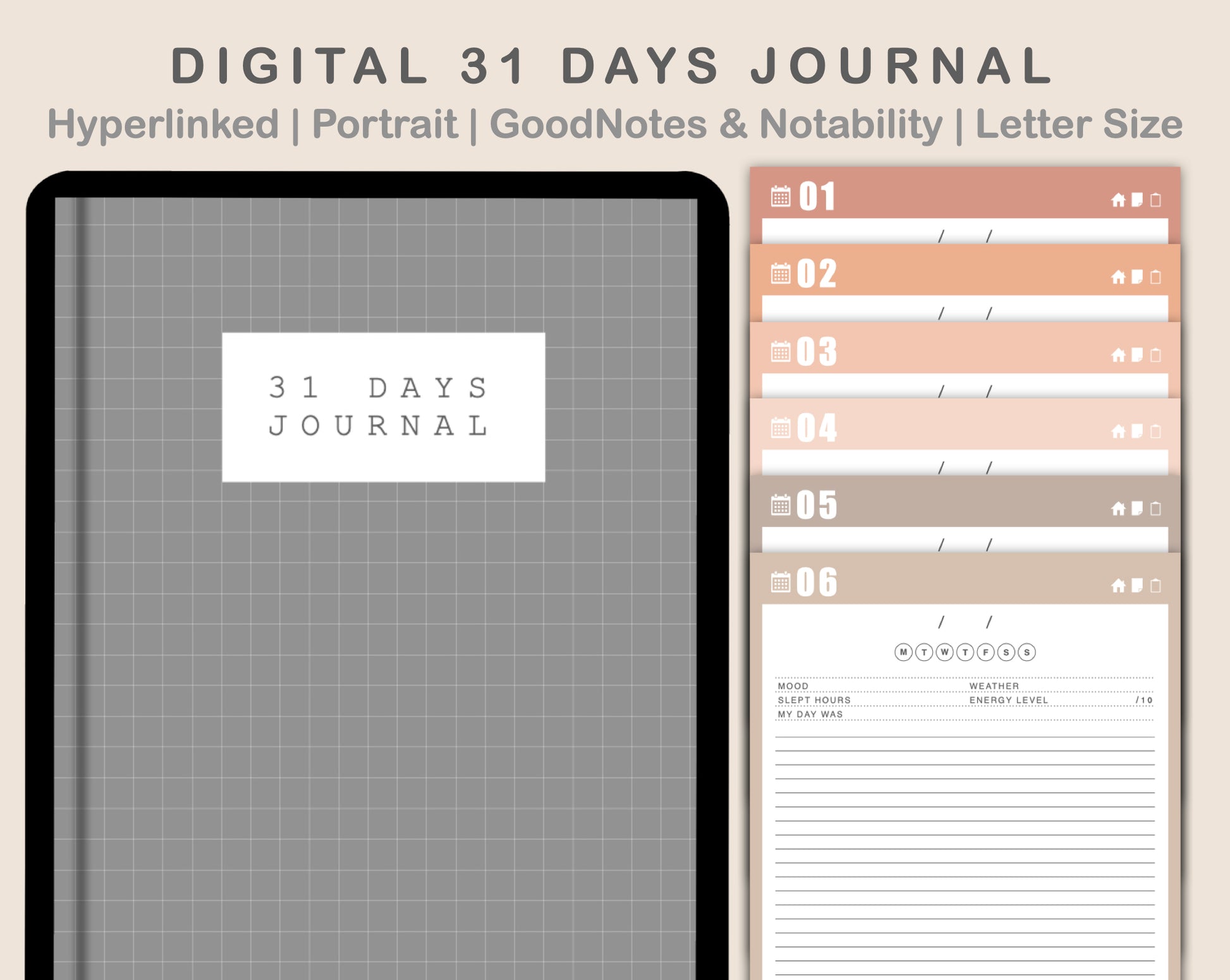This Daily Journal, 31 Day Journal in NEUTRAL theme is made to record your daily emotions and activities. It is designed in portrait orientation for pdf-annotating apps like Goodnotes 5, Noteshelf, Notability, Xodo, and others.