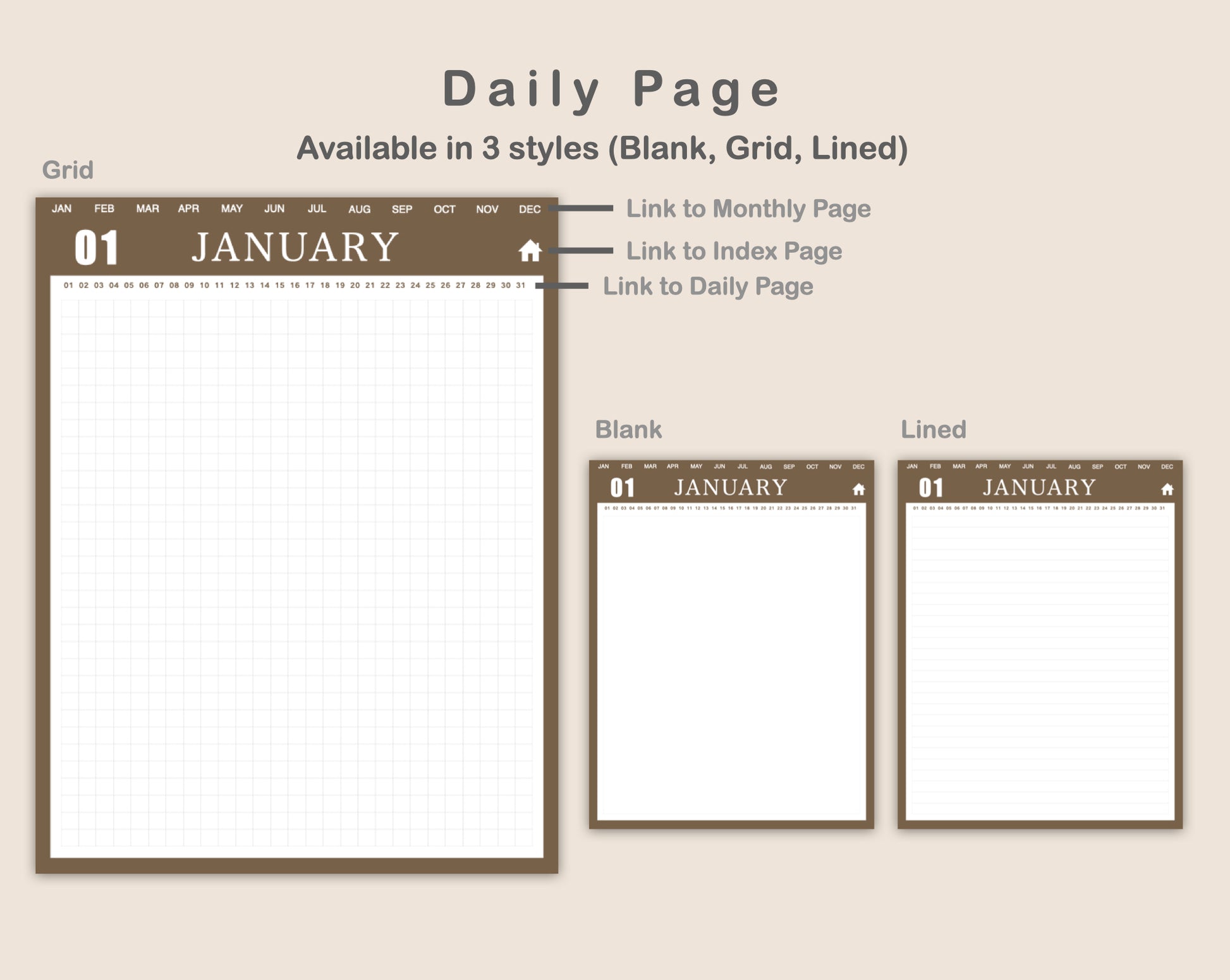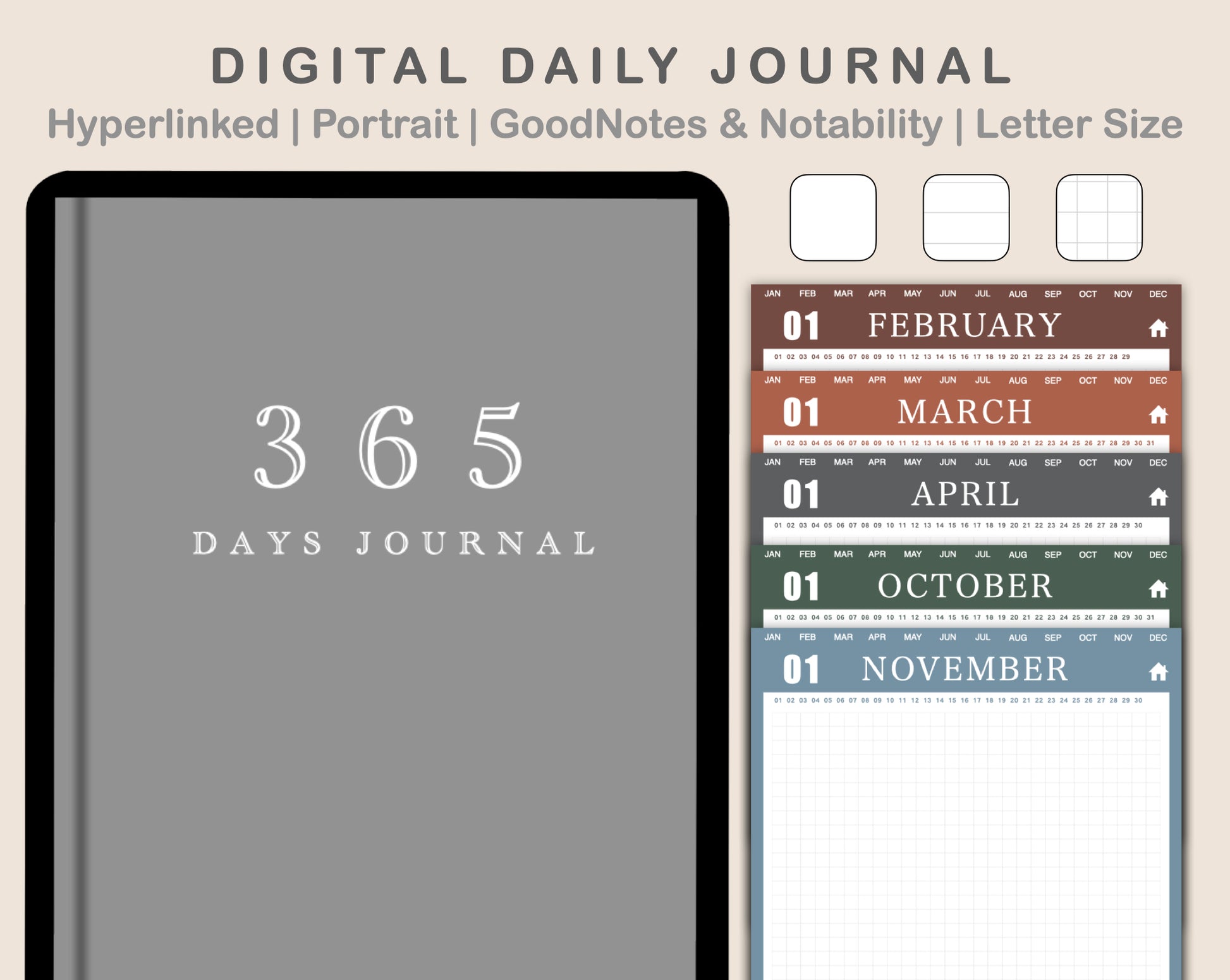This 365 Day Journal in minimal MUTED theme is made to record your memorable events, feelings and thoughts throughout the year. It is designed in portrait orientation for pdf-annotating apps like Goodnotes 5, Noteshelf, Notability, Xodo, and others.