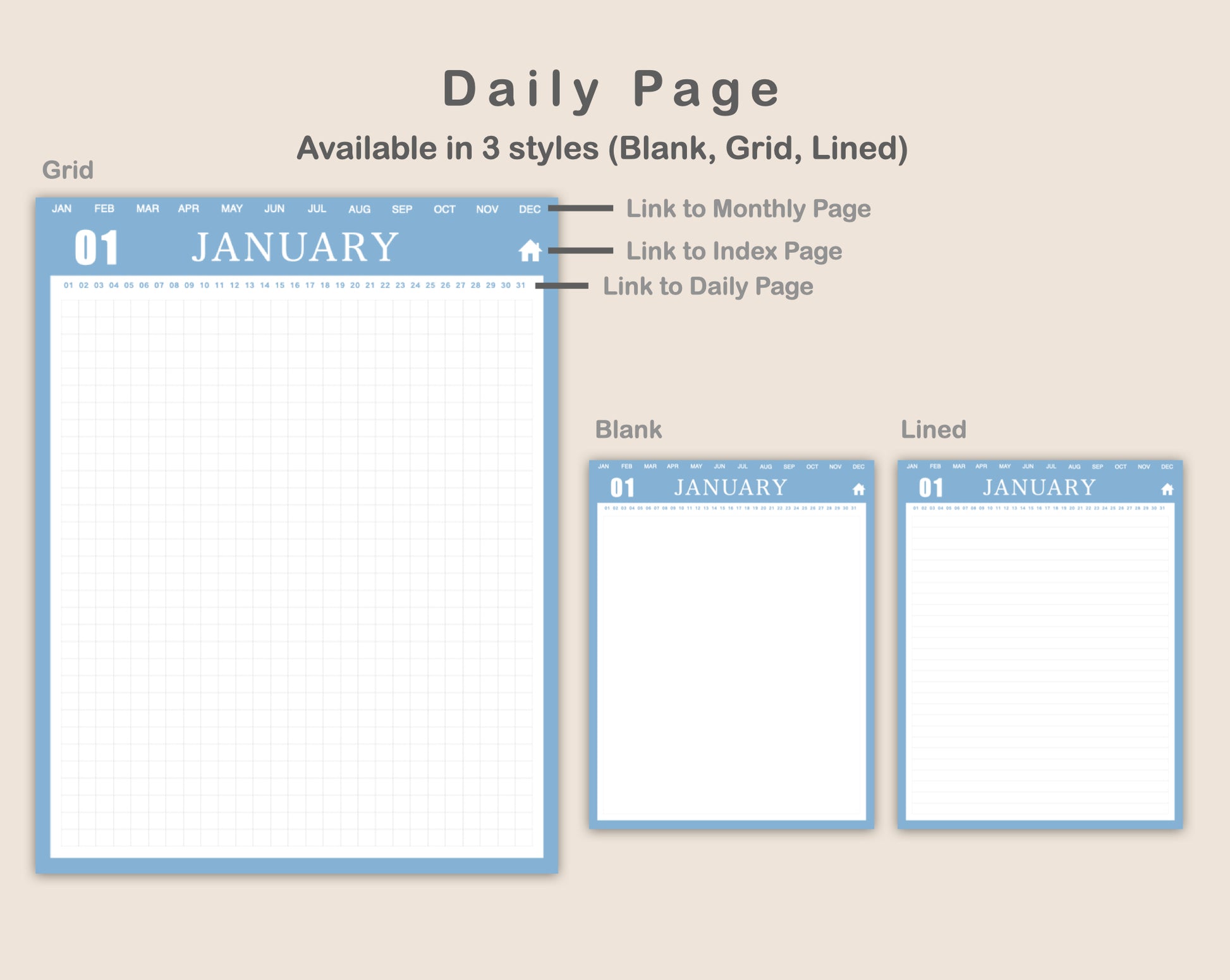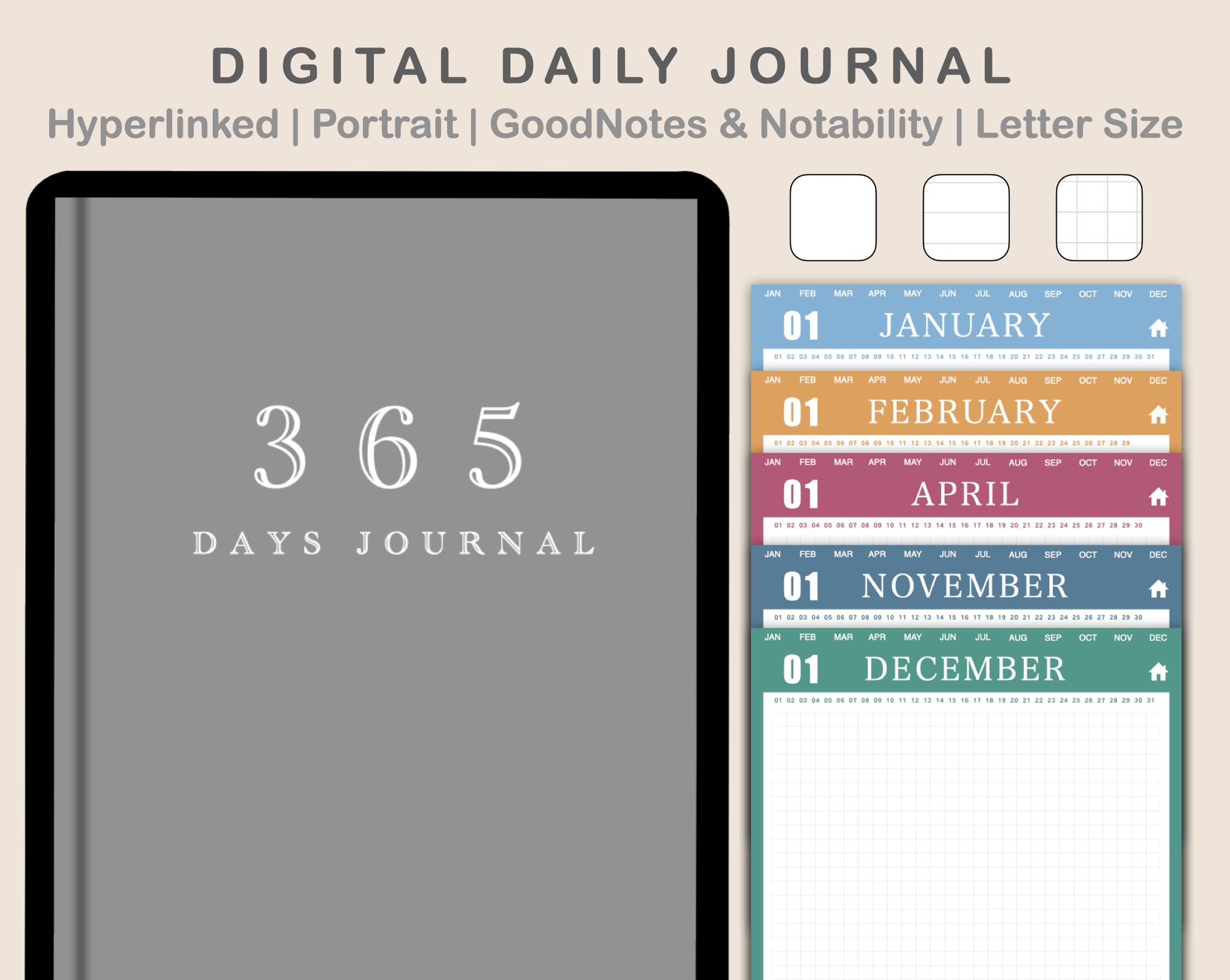 This 365 Day Journal in minimal SPRING theme is made to record your memorable events, feelings and thoughts throughout the year. It is designed in portrait orientation for pdf-annotating apps like Goodnotes 5, Noteshelf, Notability, Xodo, and others.