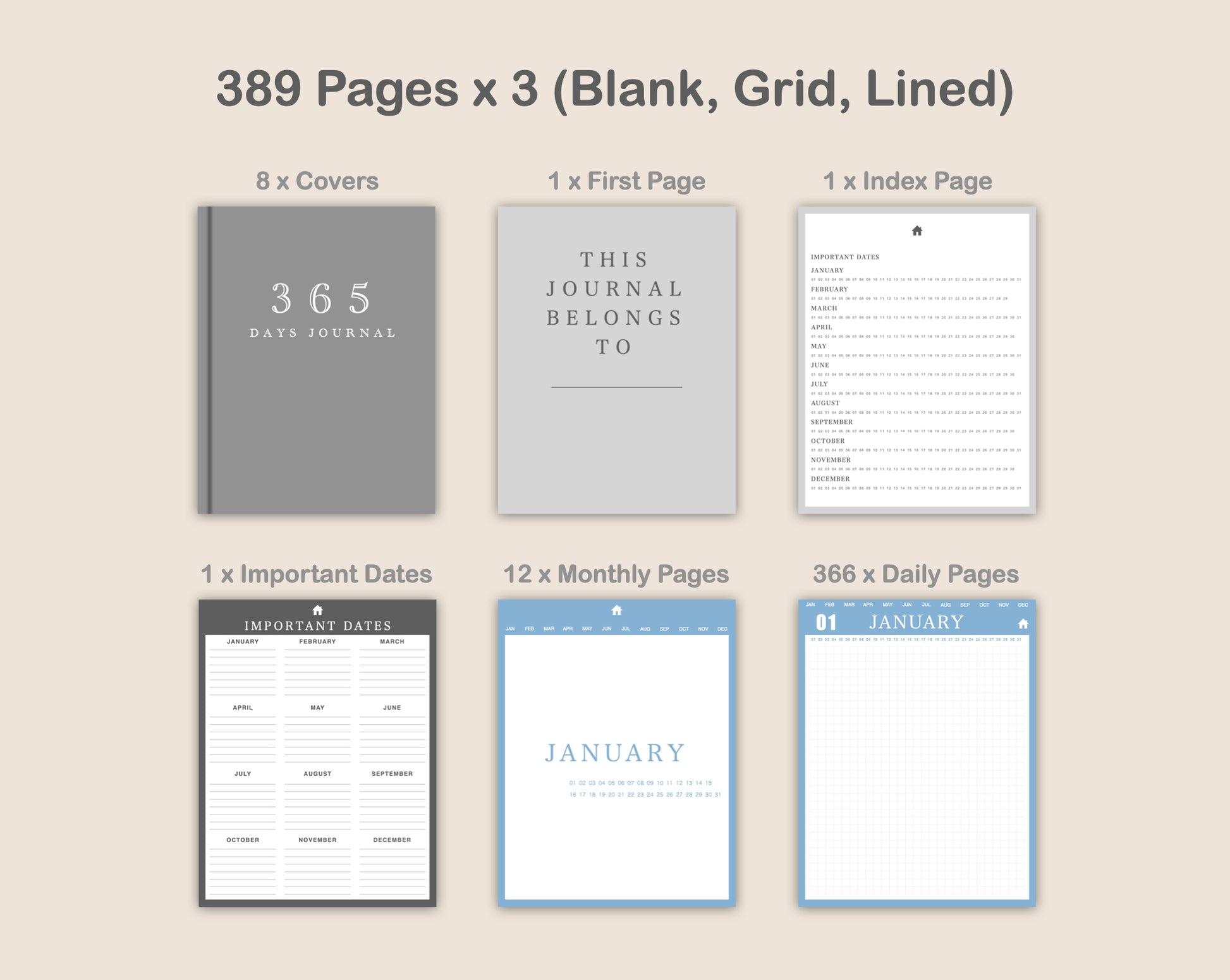 *** You will receive 3 PDF files (Blank, Lined, Grid). Each file has 389 Pages. ***