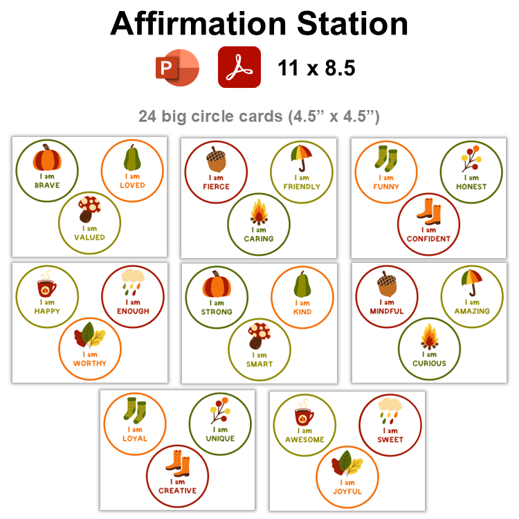 This listing is for a ready-to-print set of Affirmation Station Display with Hello Fall Theme and an editable template.