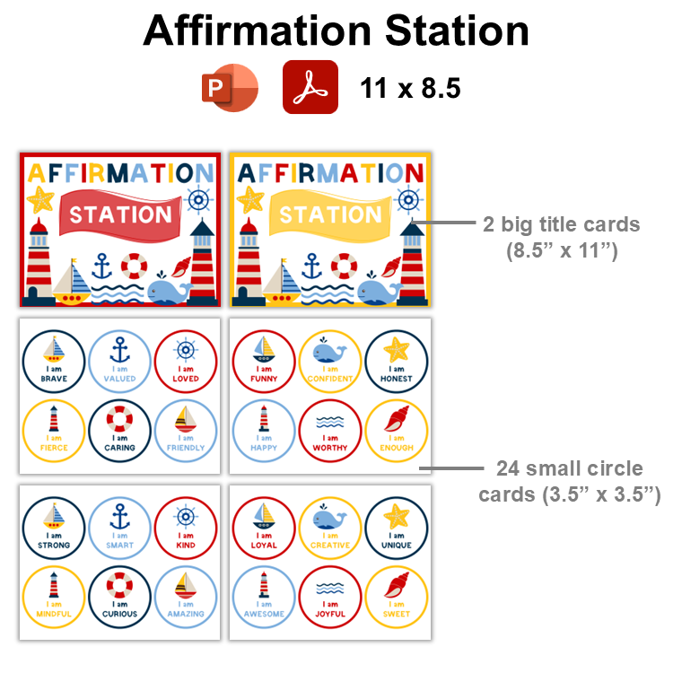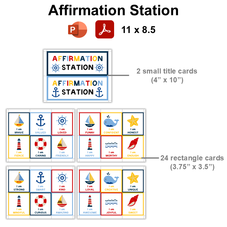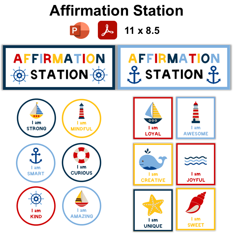 This listing is for a ready-to-print set of Affirmation Station Display with Nautical Theme and an editable template.
