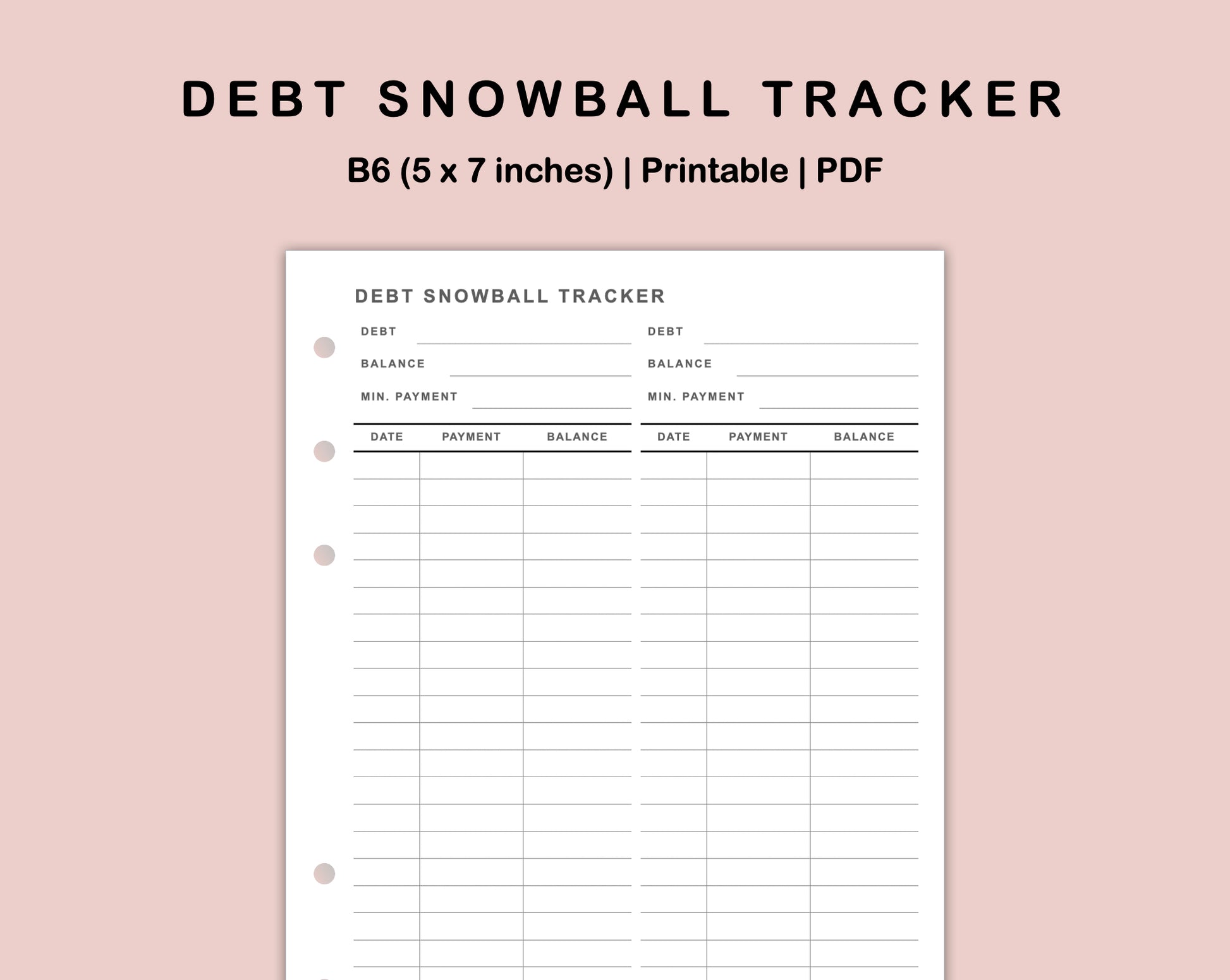 B6 Inserts - Debt Snowball Tracker