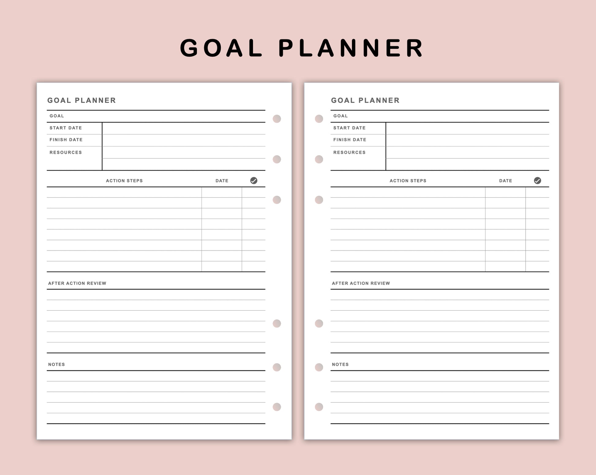 This Goal Planner Inserts is made to help you set goals, track action steps to achieve your goal. And, there is a space for review after action.