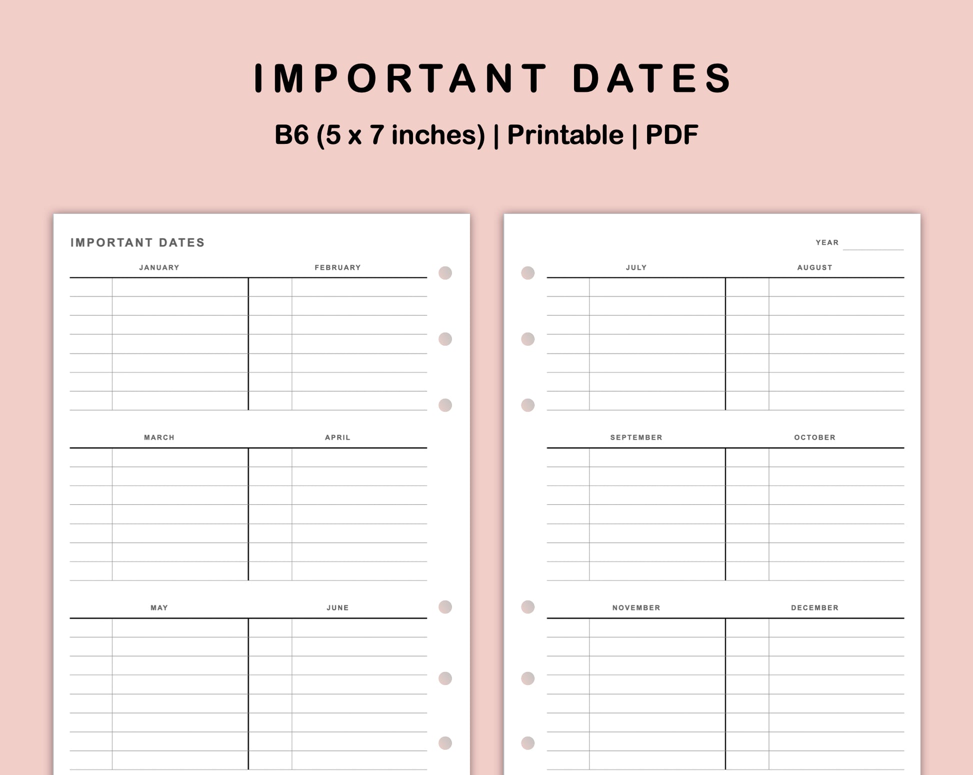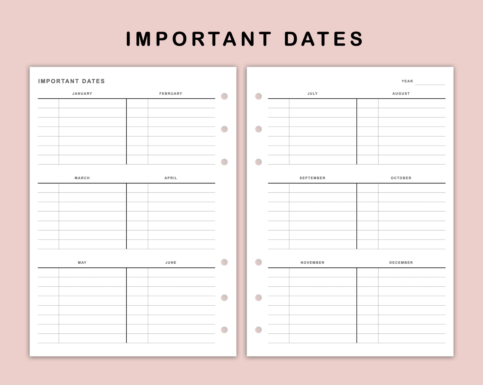 This Important Date Inserts is made to help you organise and keep track of the important dates in a year in one place.