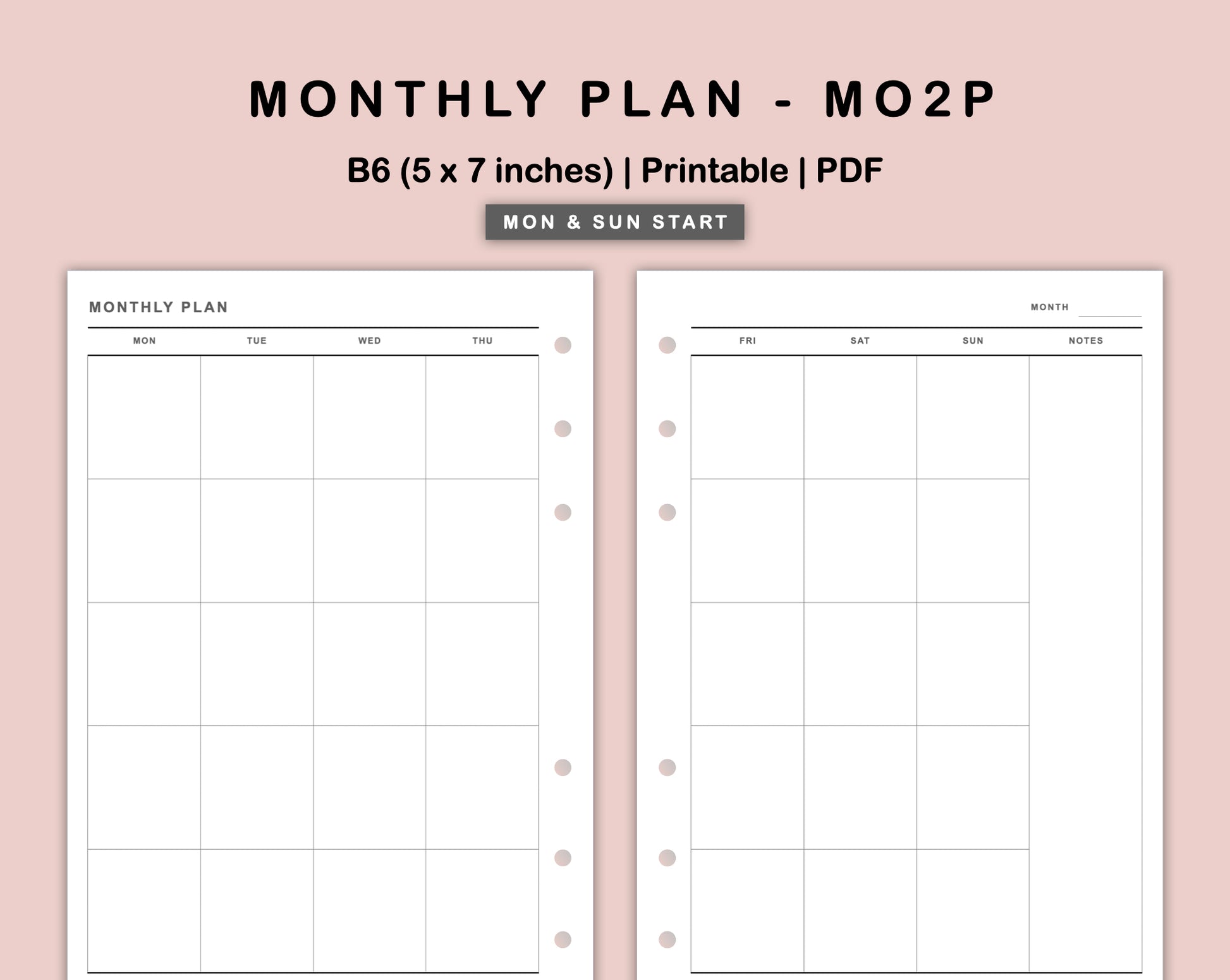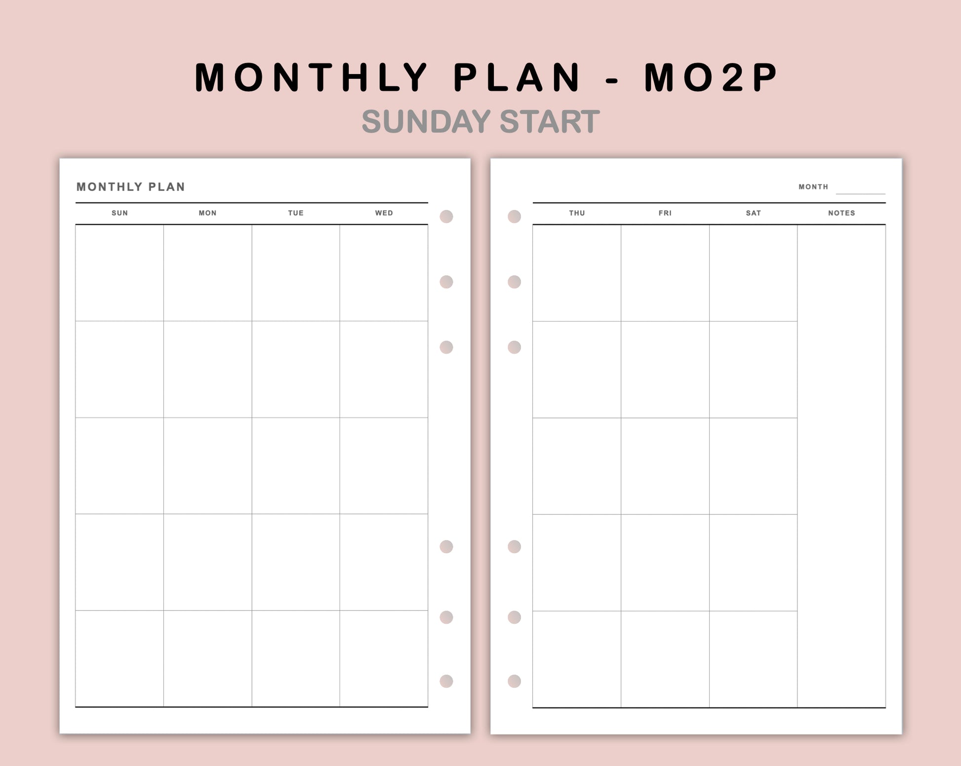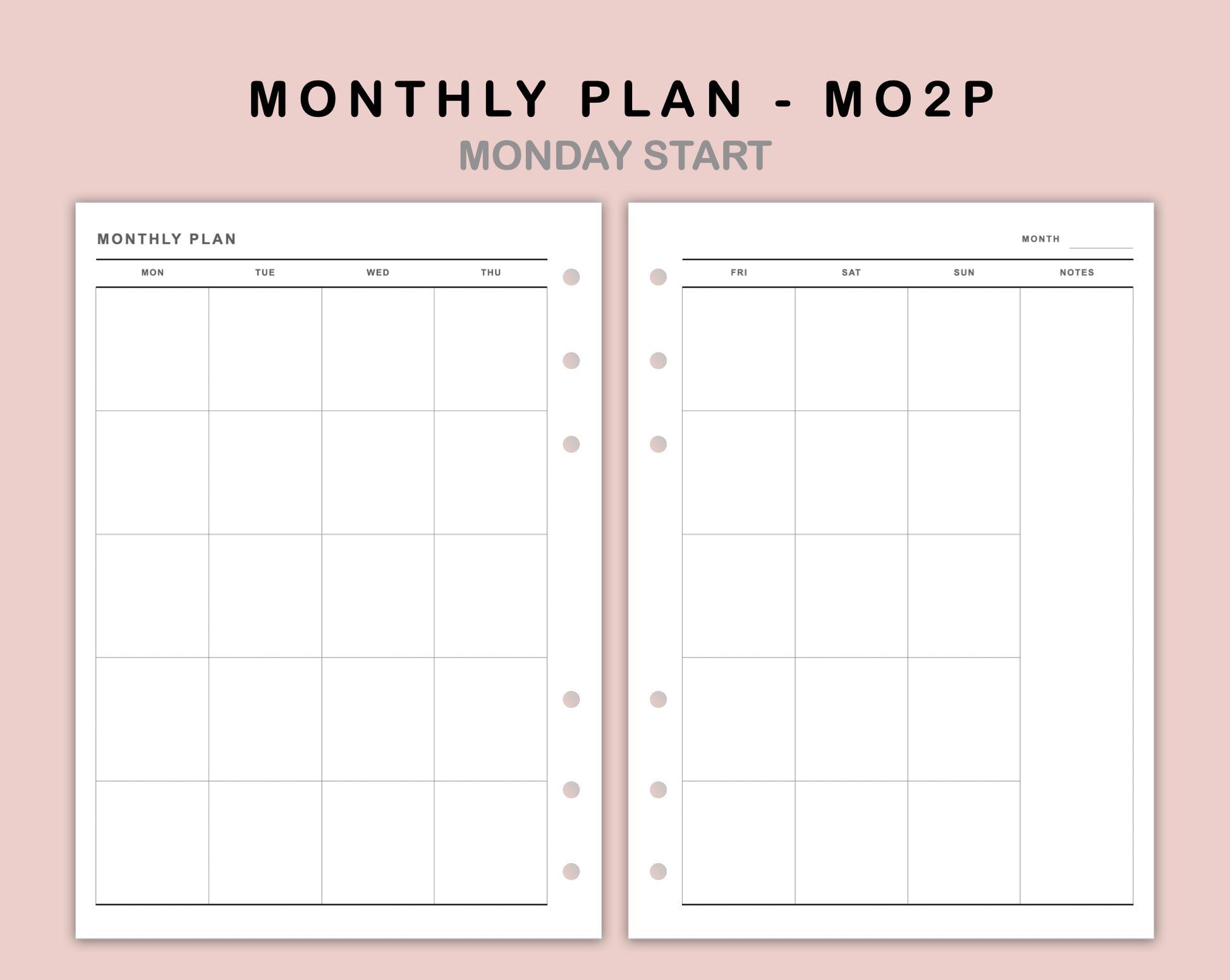 This Undated Monthly Planner Inserts (Month on 2 page) is made to help you plan and manage tasks in a month. It is available in both Monday start and Sunday start.