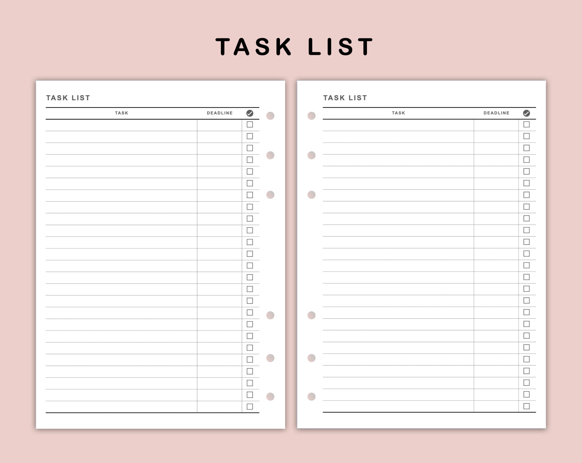 This Task List Inserts is made to help you plan and organise your task and get it done within deadline.