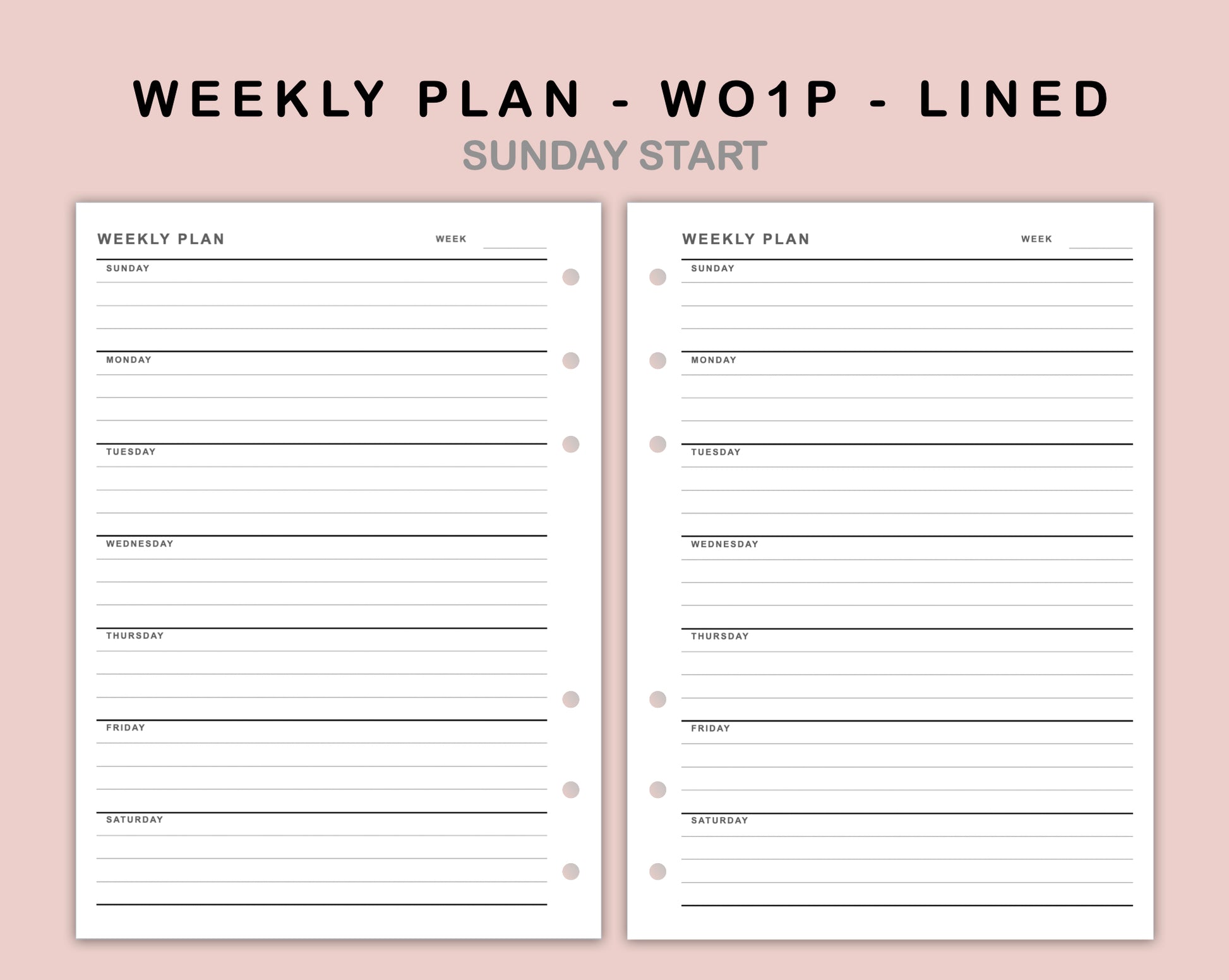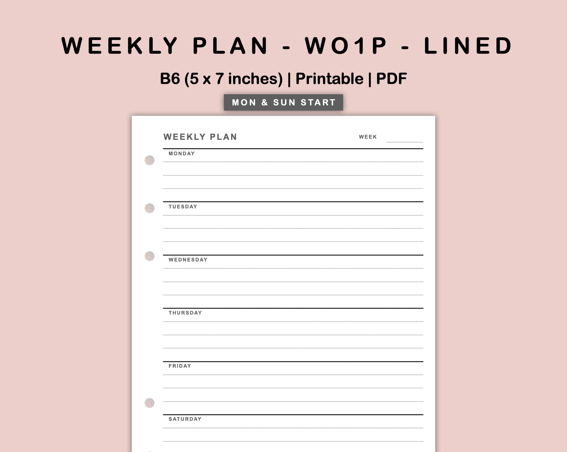 B6 Inserts - Weekly Plan - WO1P - Lined