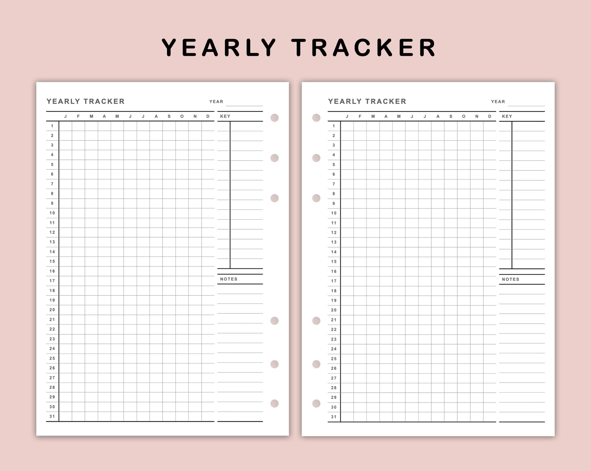 This Yearly Tracker Inserts (Year At A Glance, Year On 2 Pages) is made to help you keep track of your goals all year long.