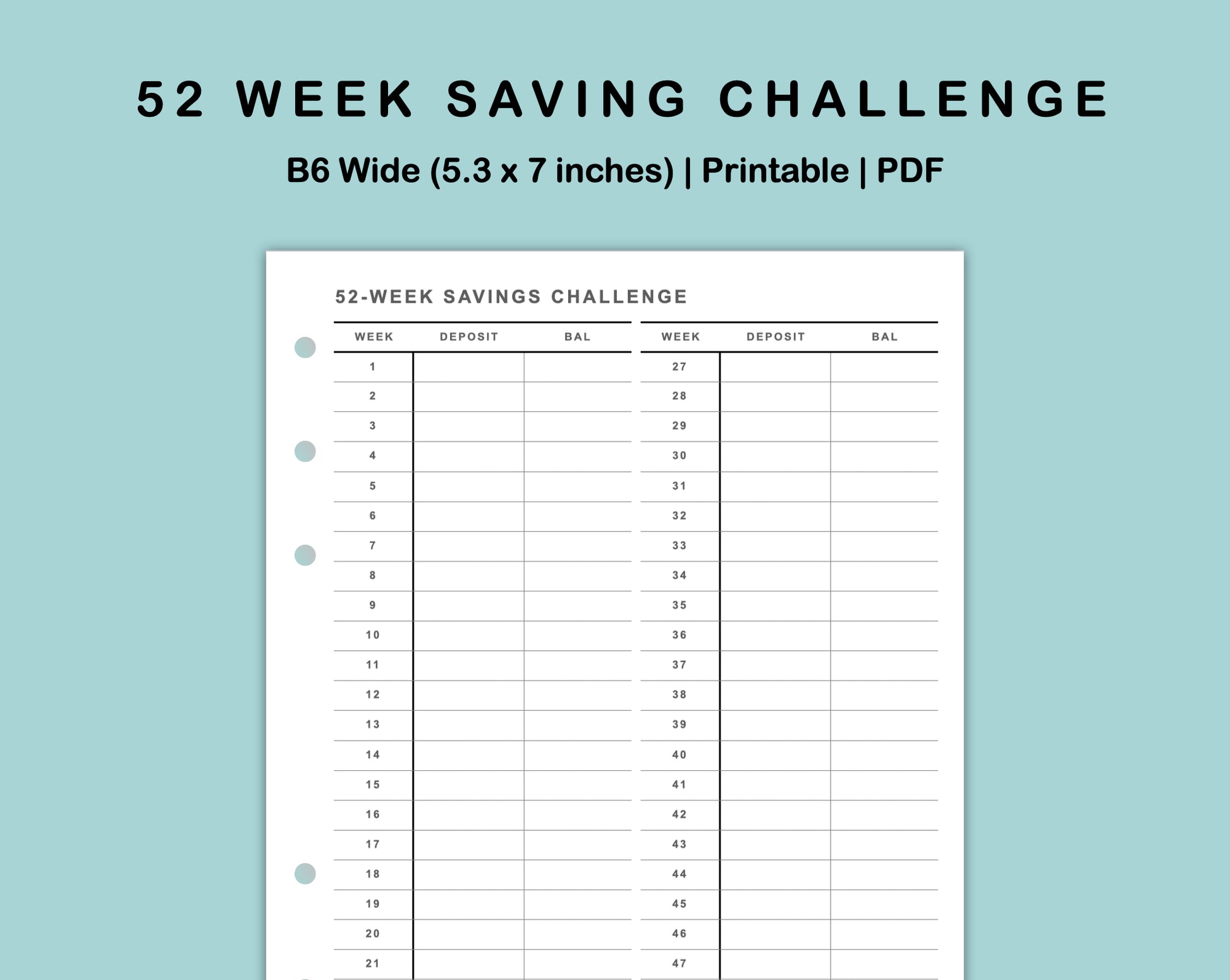 B6 Wide Inserts - 52 Week Saving Challenge