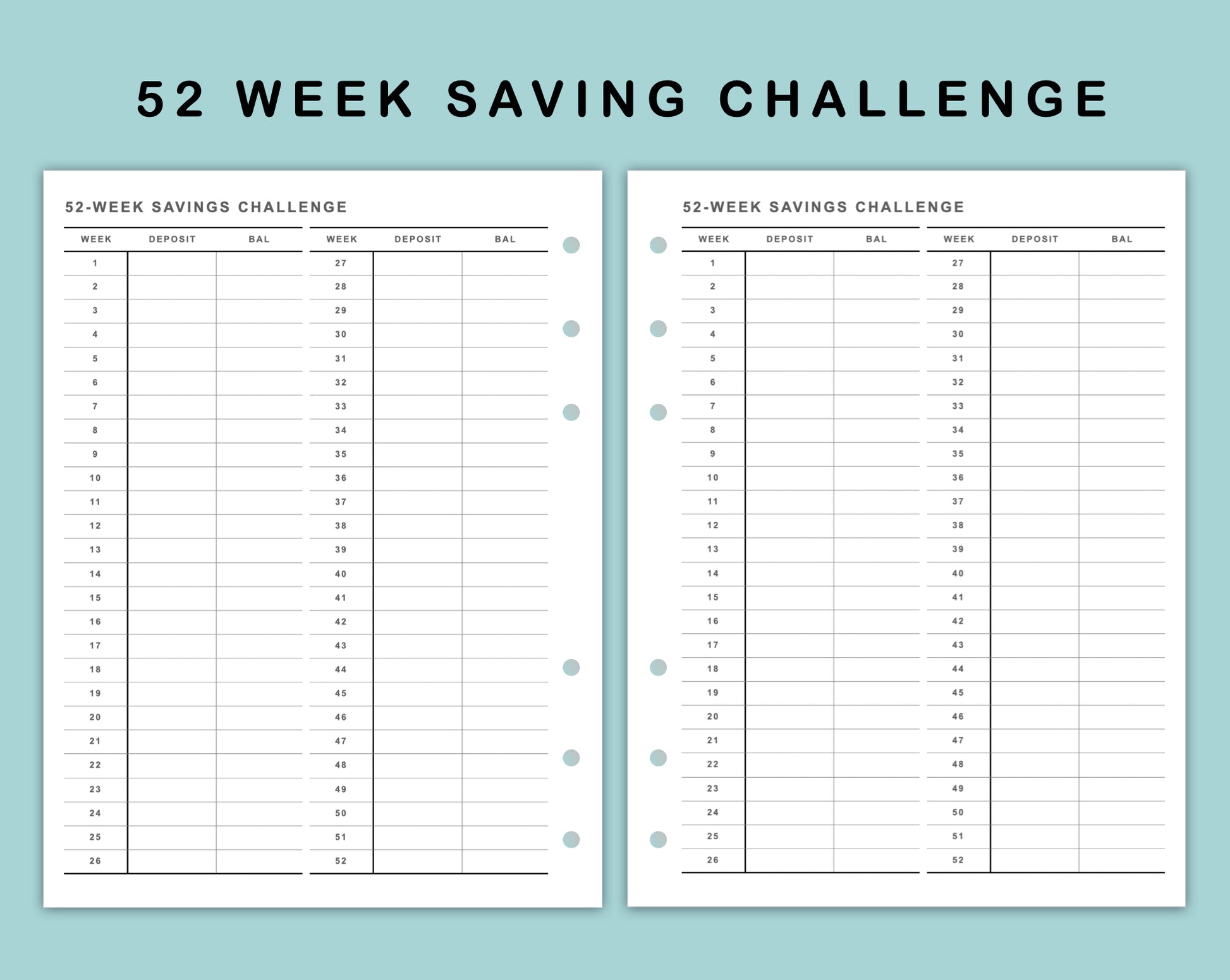 This 52-Week Saving Challenge Inserts is made to help you keep track of your saving and finally reach your financial goal.