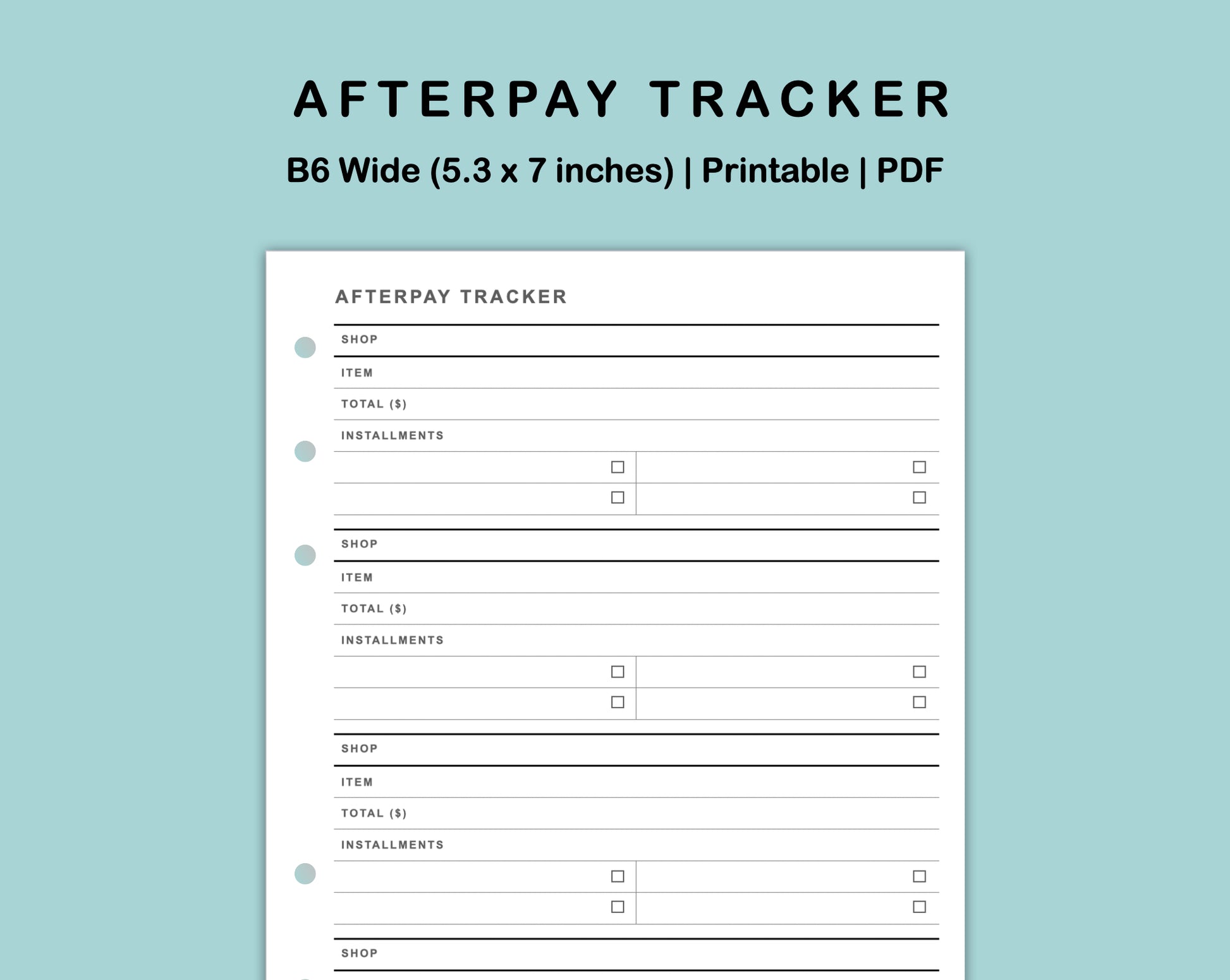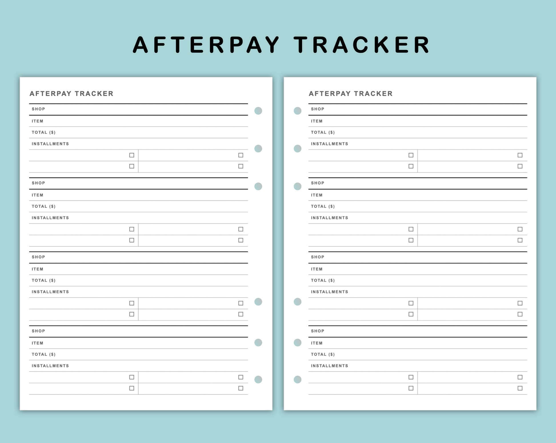 This Afterpay Tracker Inserts is made to help you track your afterpay payments.
