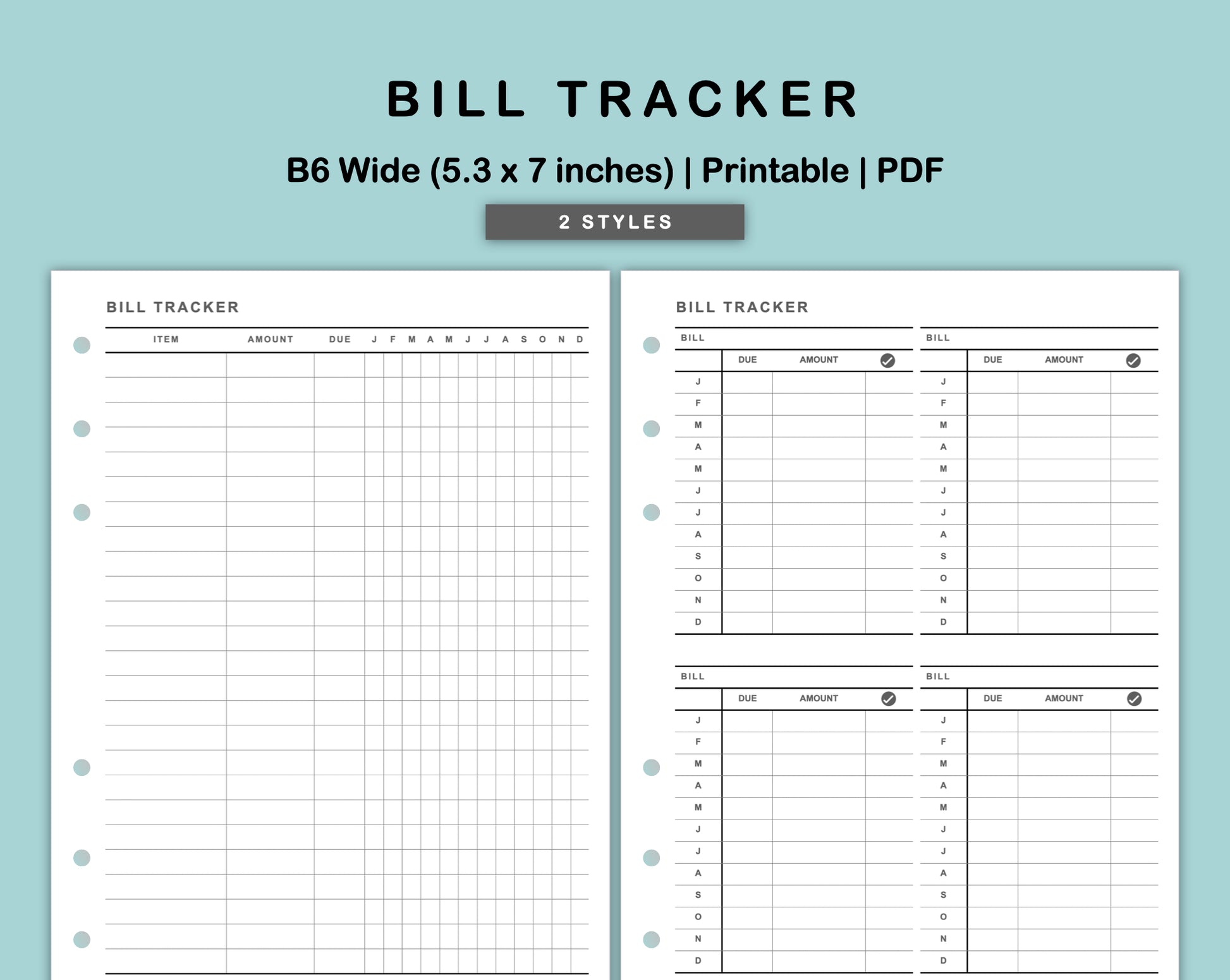 This Bill Tracker Inserts is made to help you keep track of your bill/ expense. There are 2 styles. Choose the one that matches your preference