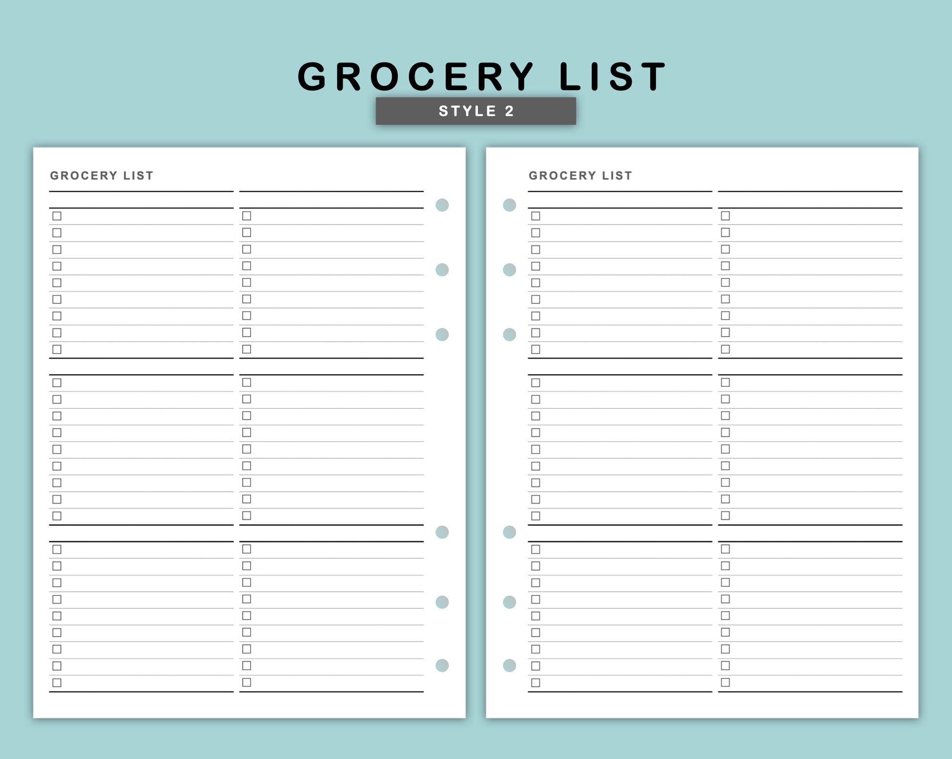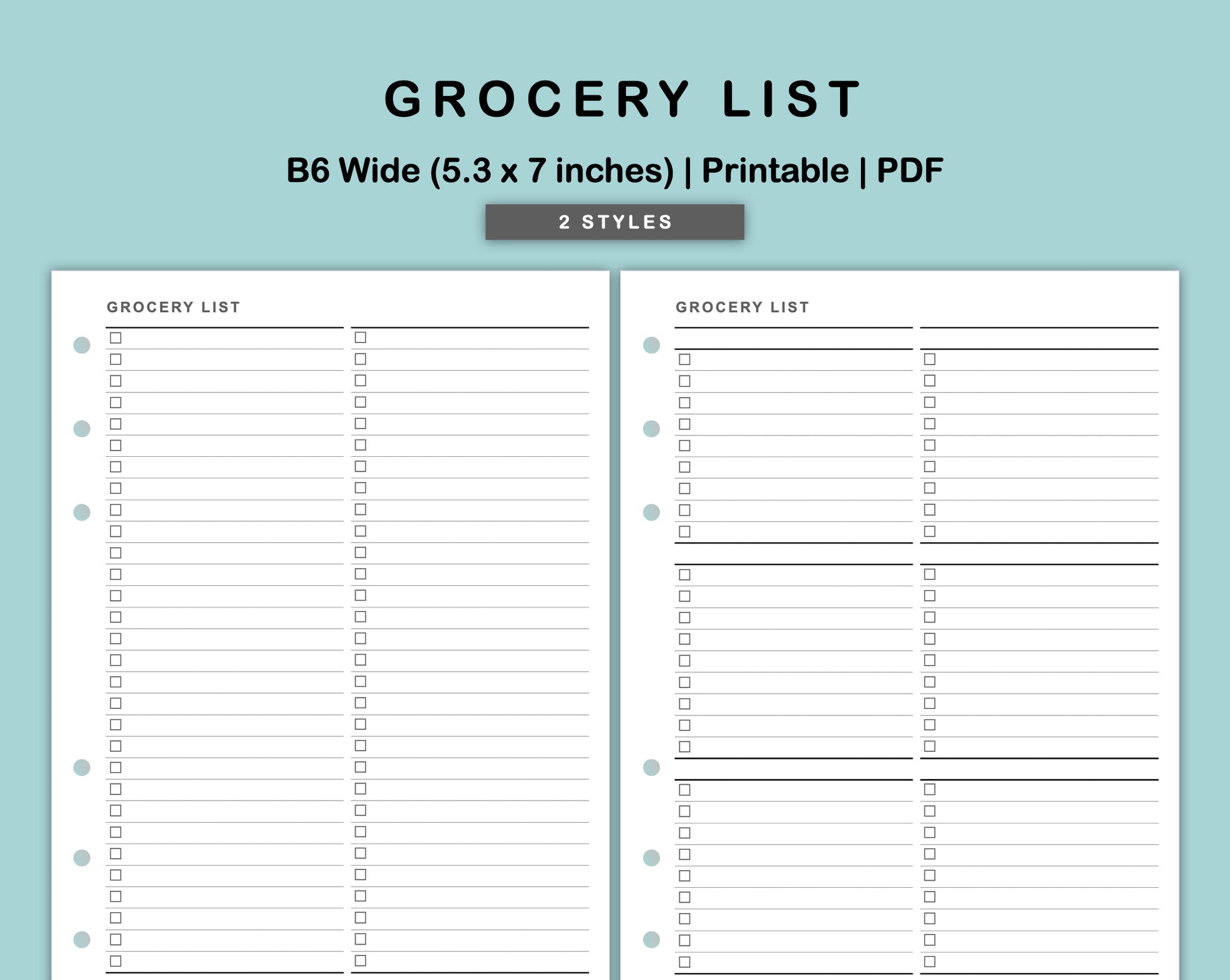 This Grocery List Inserts are made to help you plan and organise your shopping list. The Inserts are designed in 2 styles. Choose the one that matches your preference.