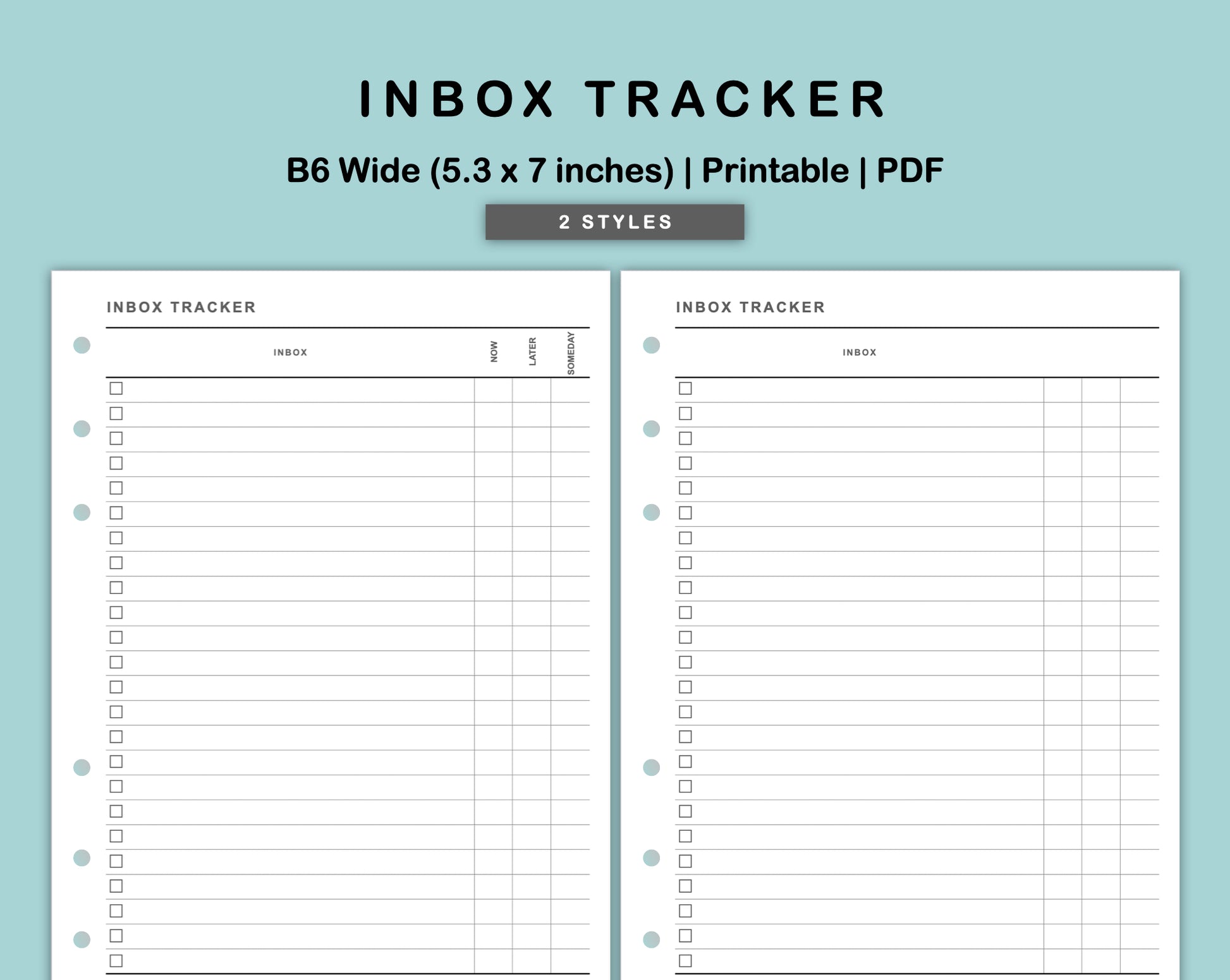 This Inbox Tracker Inserts are made to help you jot down anything that you want to before writing them in the proper place in your planner.The Inserts are designed in 2 styles. Choose the one that matches your preference.