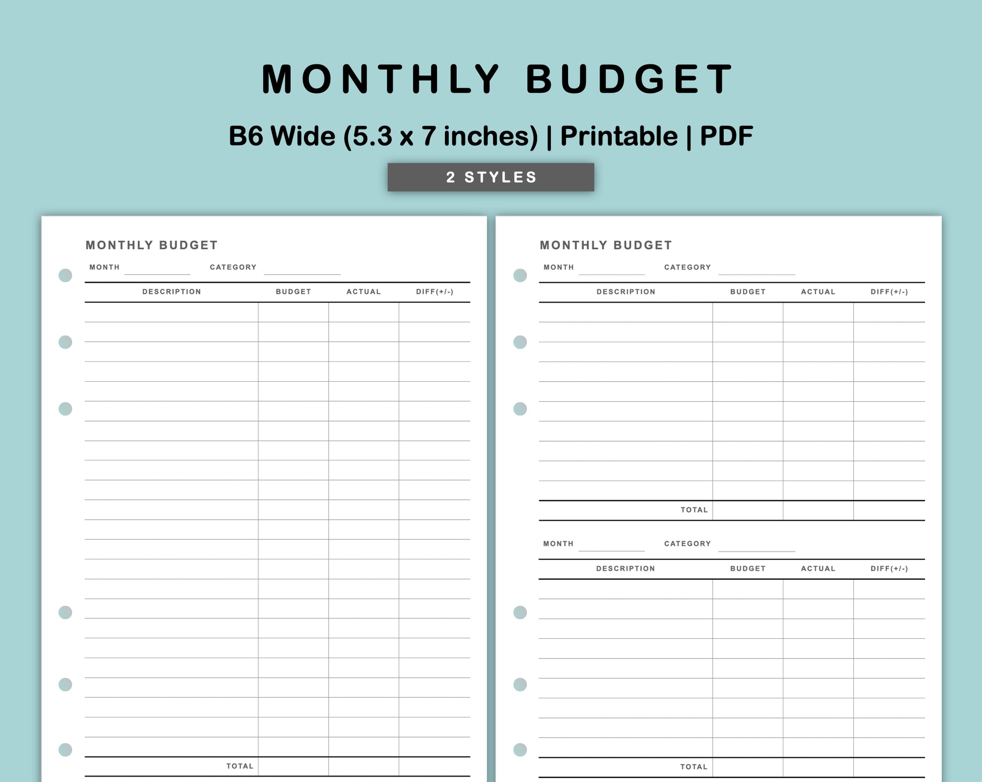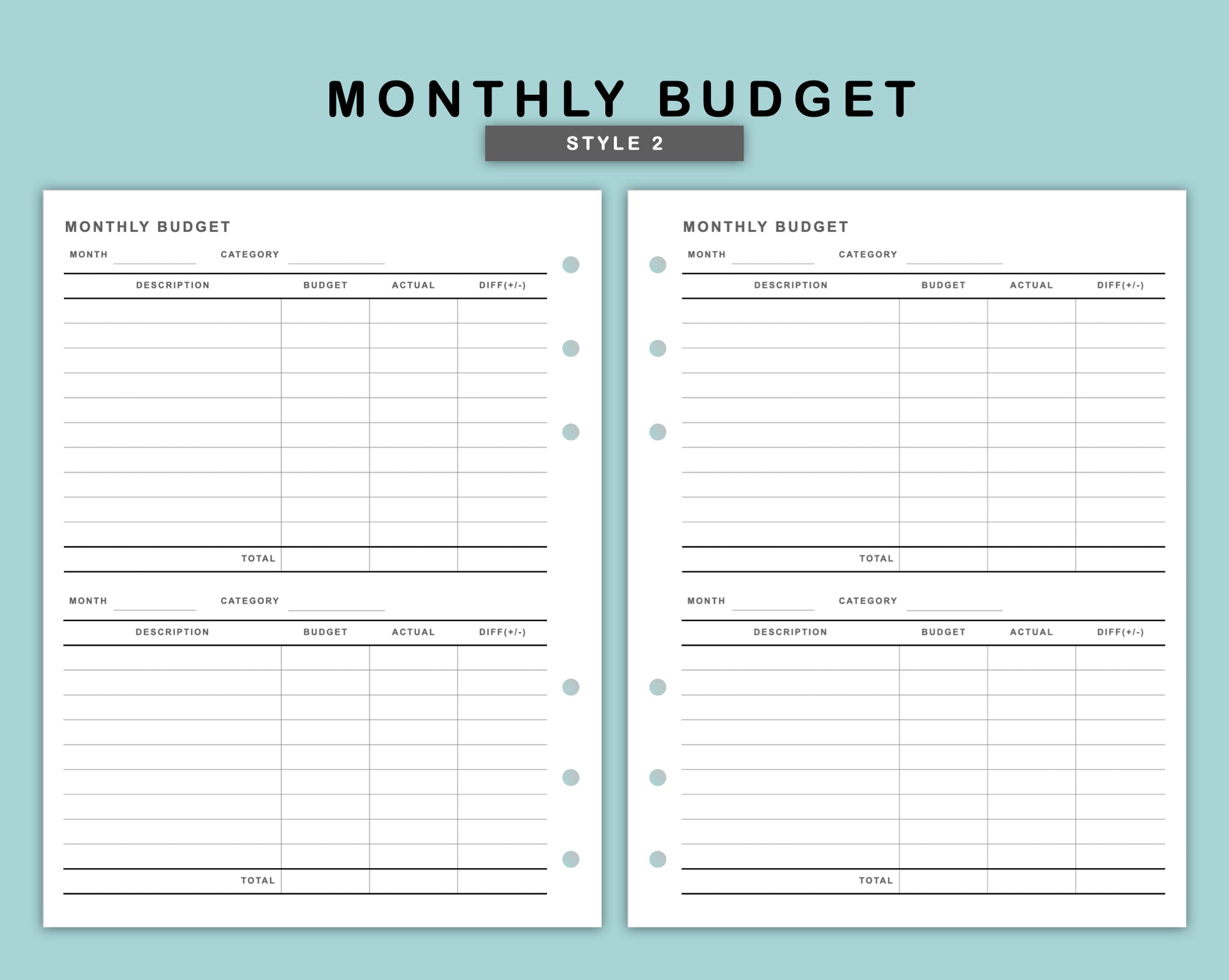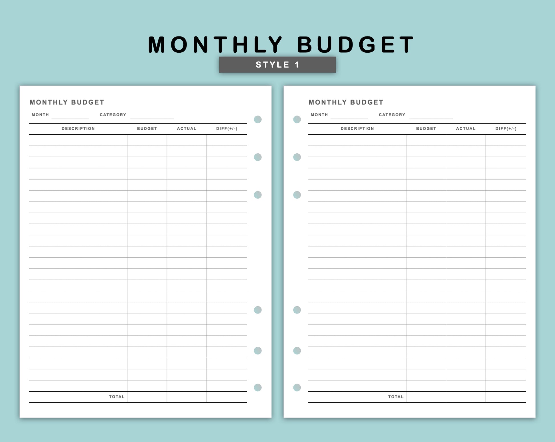 This Monthly Budget Inserts are made to help you plan and organize budget in each month. The Inserts are designed in 2 styles. Choose the one that matches your preference.