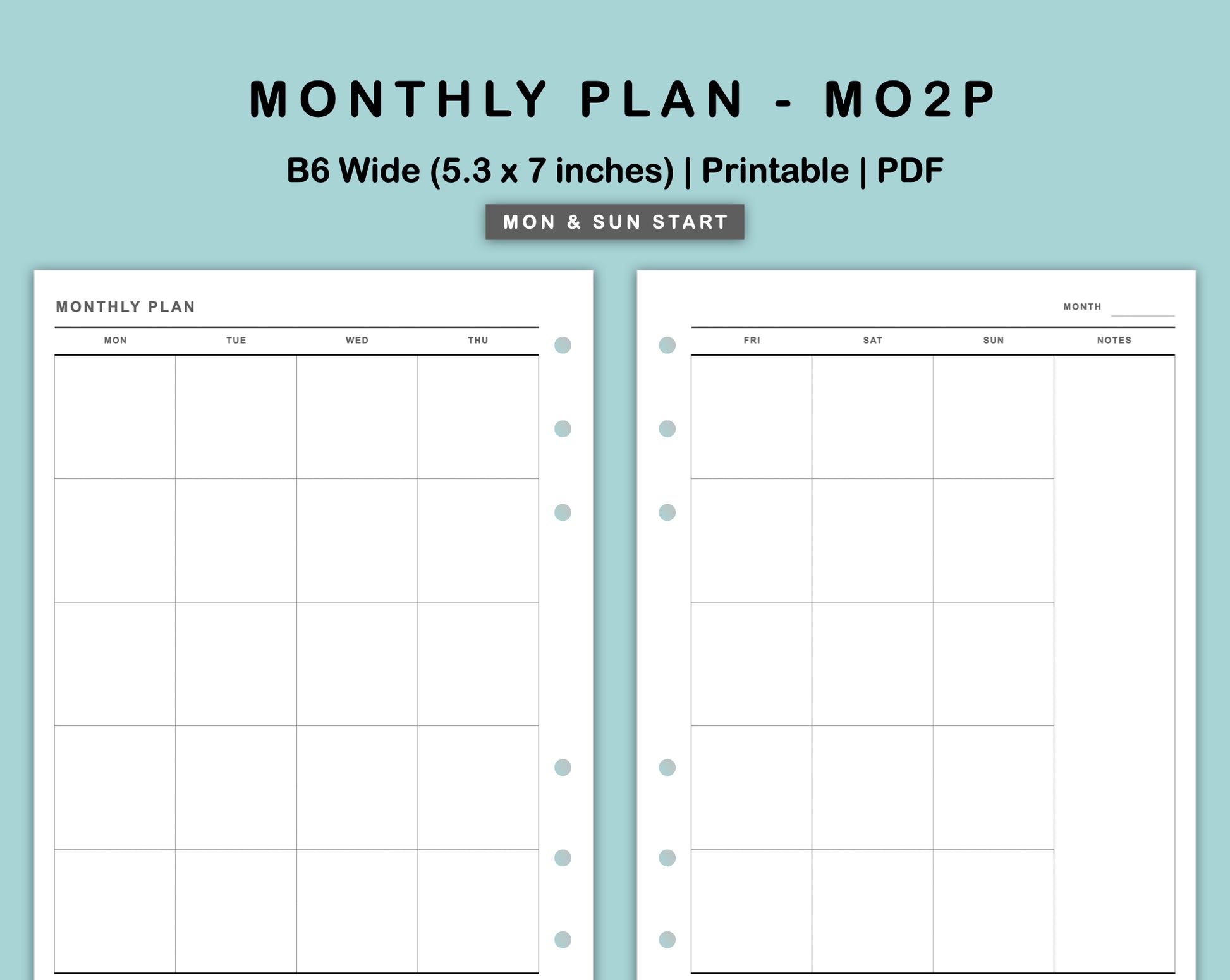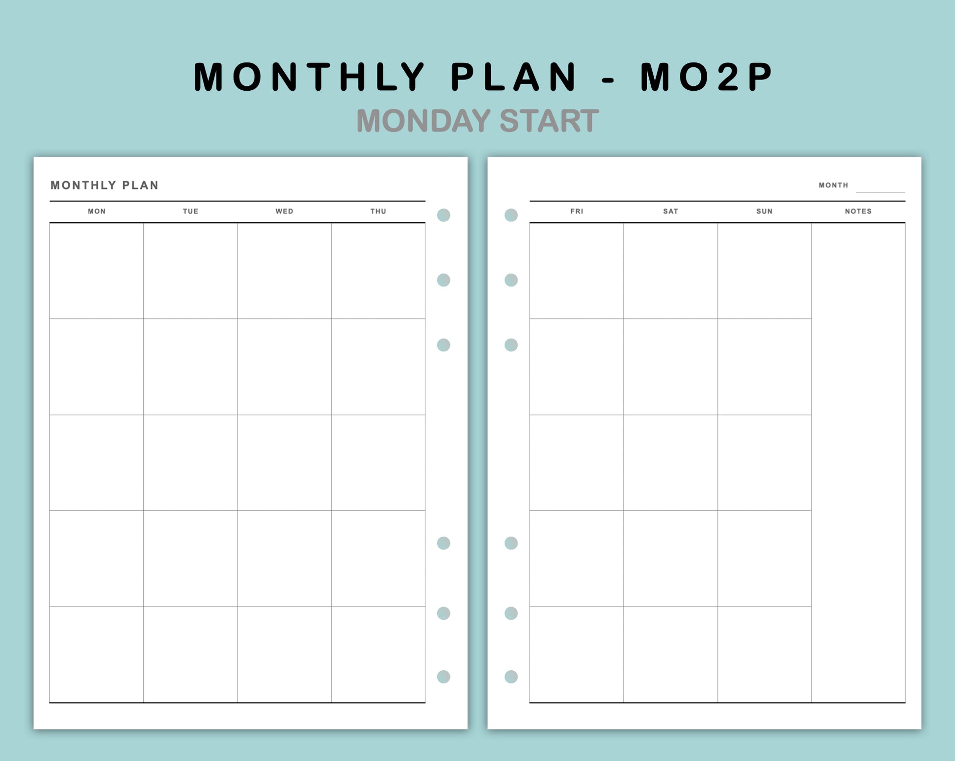 This Undated Monthly Planner Inserts (Month on 2 page) is made to help you plan and manage tasks in a month. It is available in both Monday start and Sunday start.