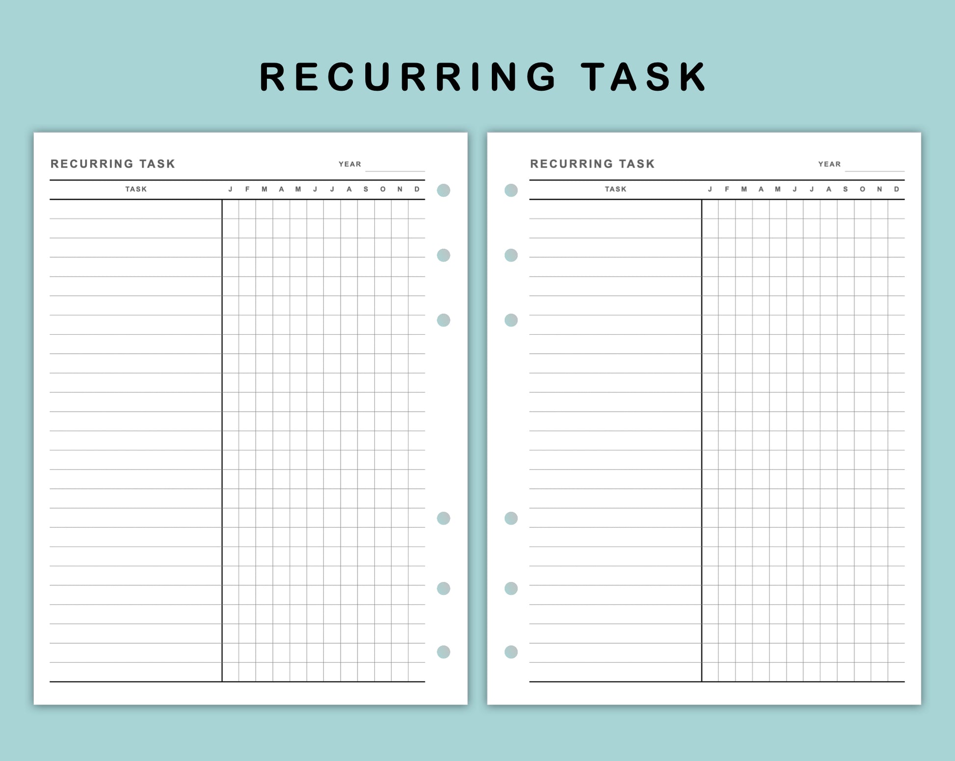This Recurring Task Tracker Inserts is made to help you track your monthly tasks for the whole year.