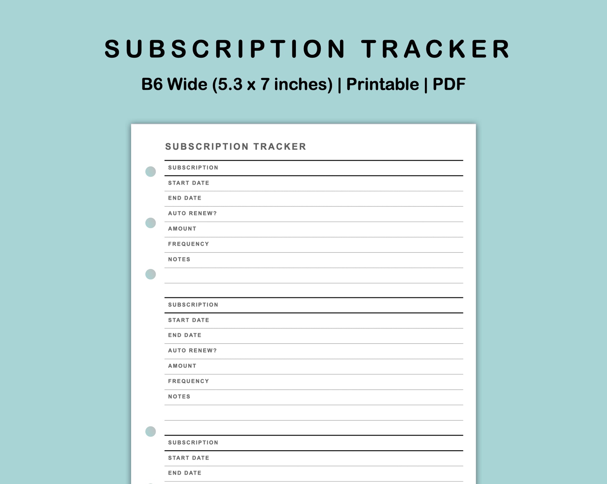 This Subscription Tracker Inserts is made to help you keep track of your subscription and membership.
