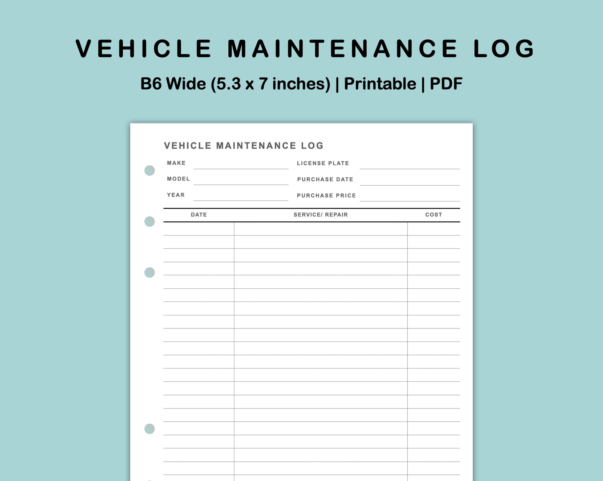 This Vehicle Maintenance Log Inserts is made to help you keep track of any services and repairs done for your cars, or other automobiles.