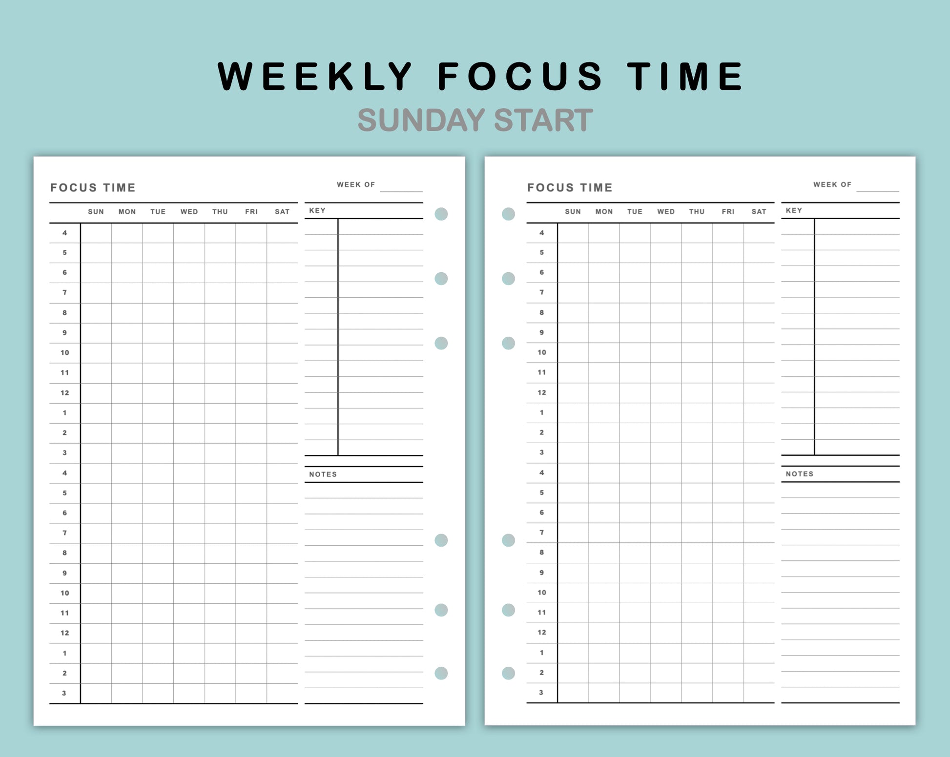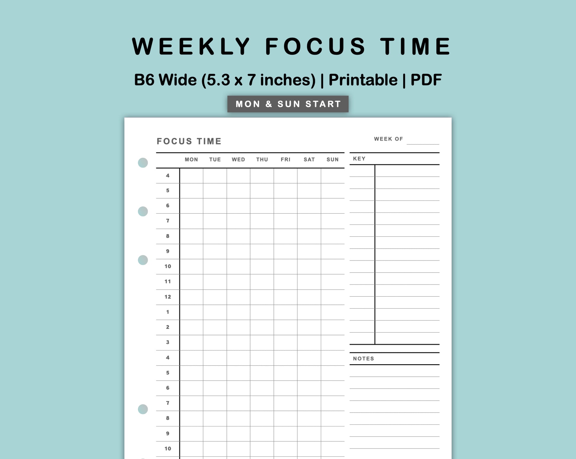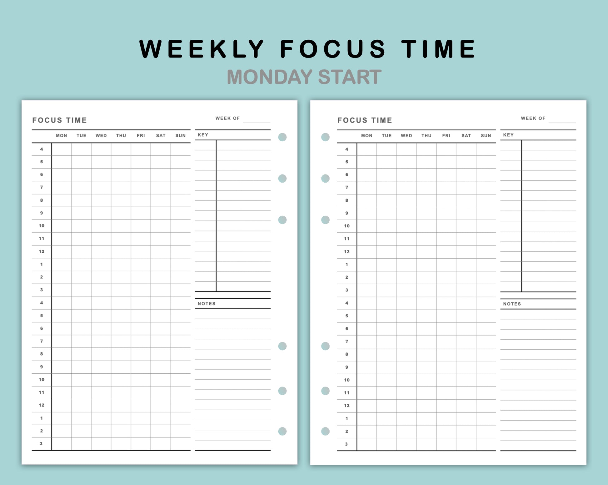 This Weekly Focus Time Inserts is made to help you keep track of all of your tasks in a week by using a highlighter to colour your hourly activity. It is available in both Monday start and Sunday start.