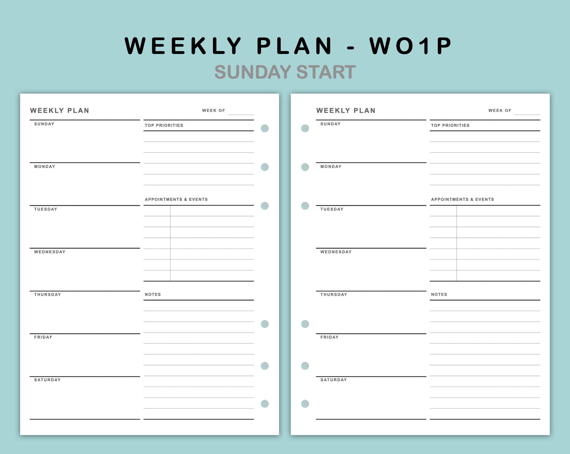 This Undated Weekly Planner Inserts (Week on 1 page) is made to help you plan and manage tasks in a week. The planner has top priorities, appointments & events, and notes section. It is available in both Monday start and Sunday start.