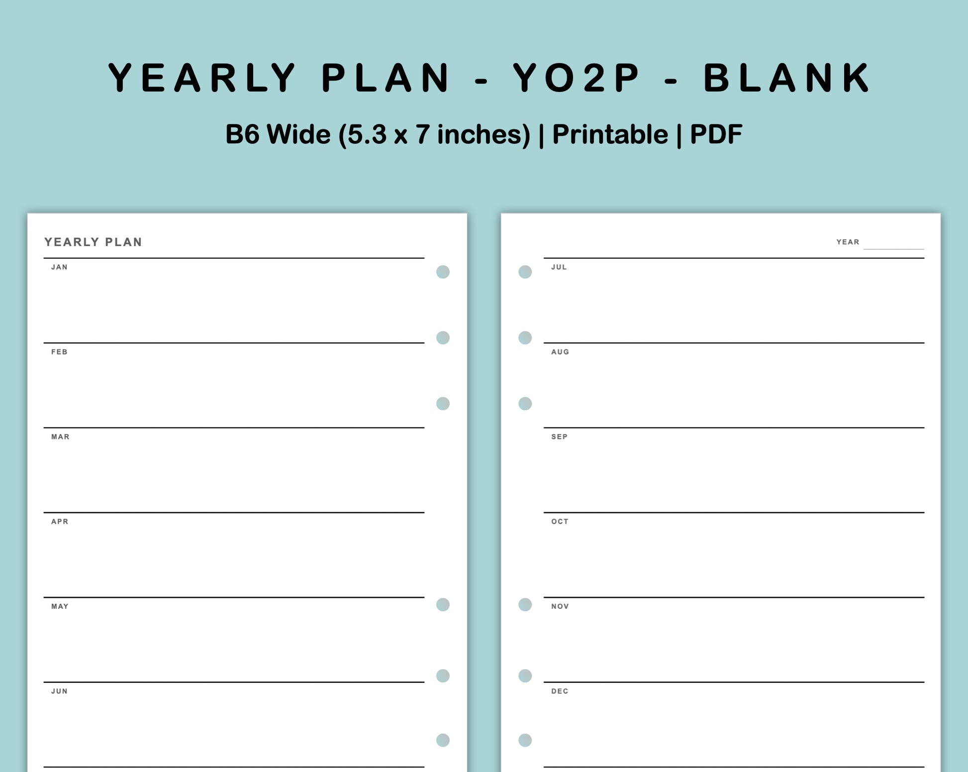 B6 Wide Inserts - Yearly Plan - YO2P - Blank