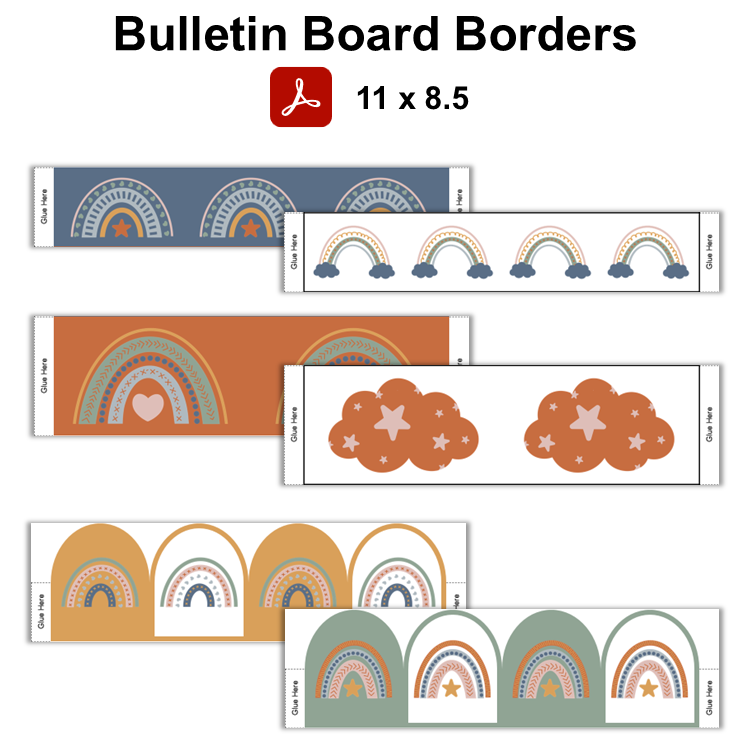 This listing is for a ready-to-print set of Bulletin Board Borders with Neutral Rainbow Theme.