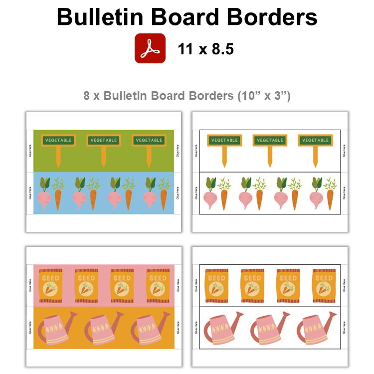 • 1 PDF file containing ready-to-print Bulletin Board Borders (8 Pages).