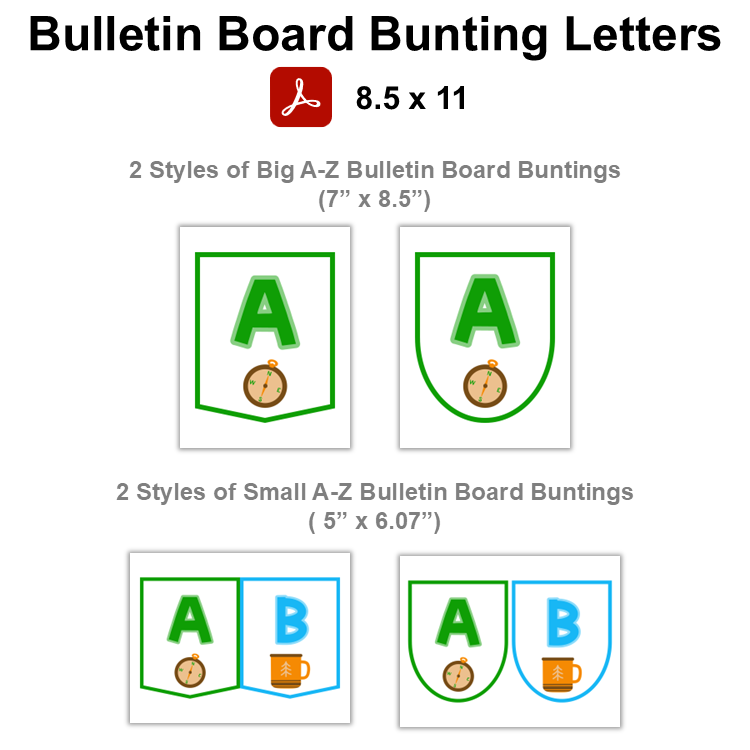 • 2 PDF file containing ready-to-print Bulletin Board Bunting Letters (78 Pages).