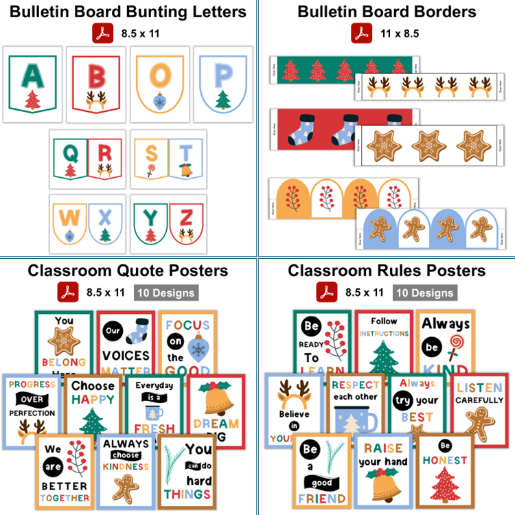 This listing is for a bundle of Bright Christmas Theme Classroom Decoration. All listings are downloadable files that you can access immediately after purchase. The bundle includes