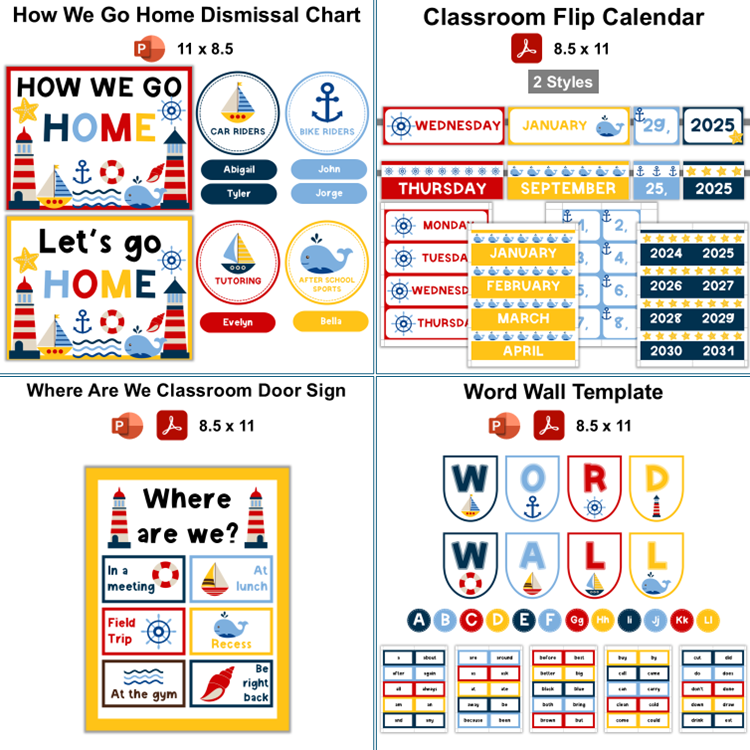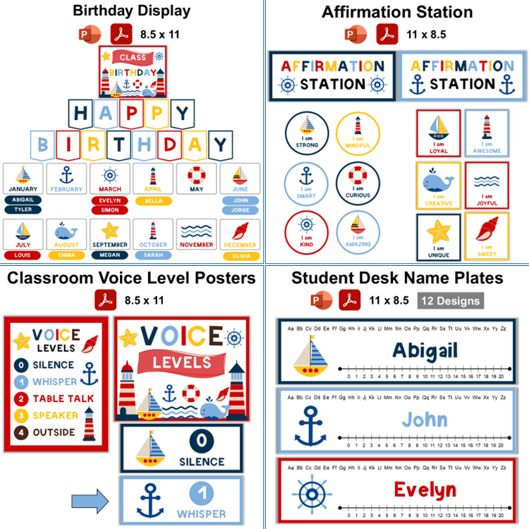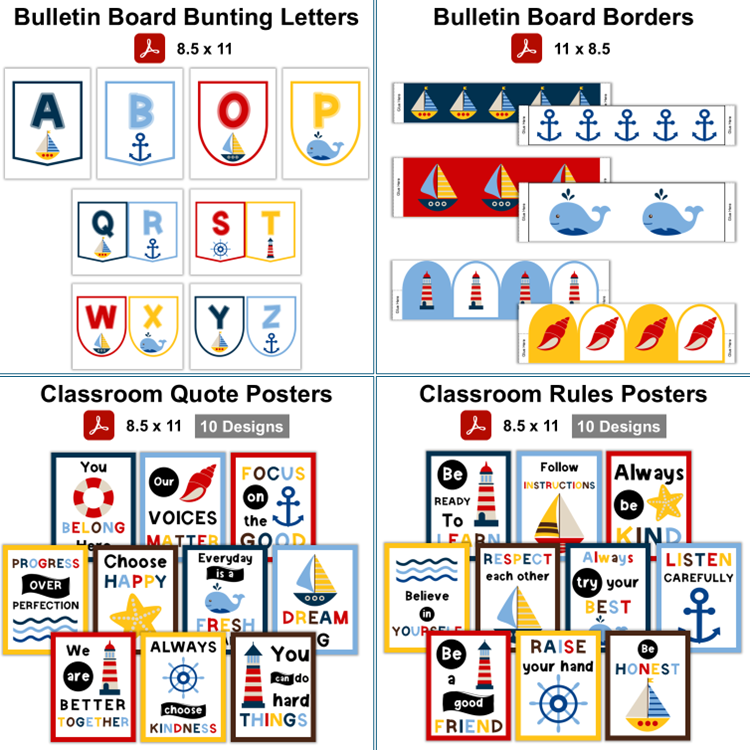This listing is for a bundle of Nautical Theme Classroom Decoration. All listings are downloadable files that you can access immediately after purchase. The bundle includes