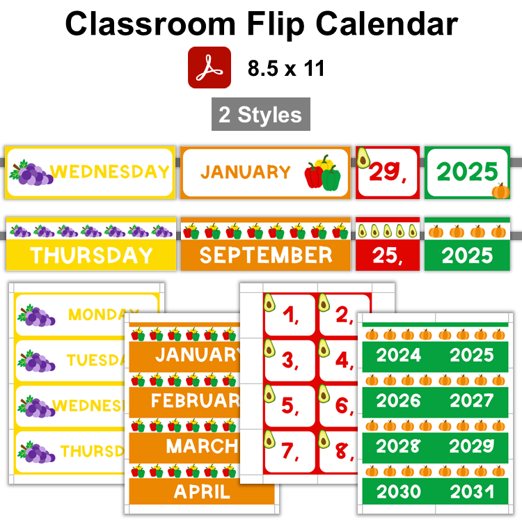 • 1 PDF file containing a ready-to-print Classroom Flip Calendar (20 Pages).