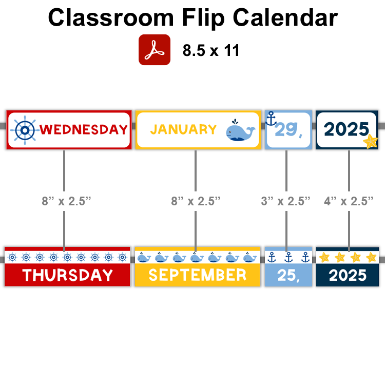 This listing is for a ready-to-print set of Classroom Flip Calendar with Nautical Theme.