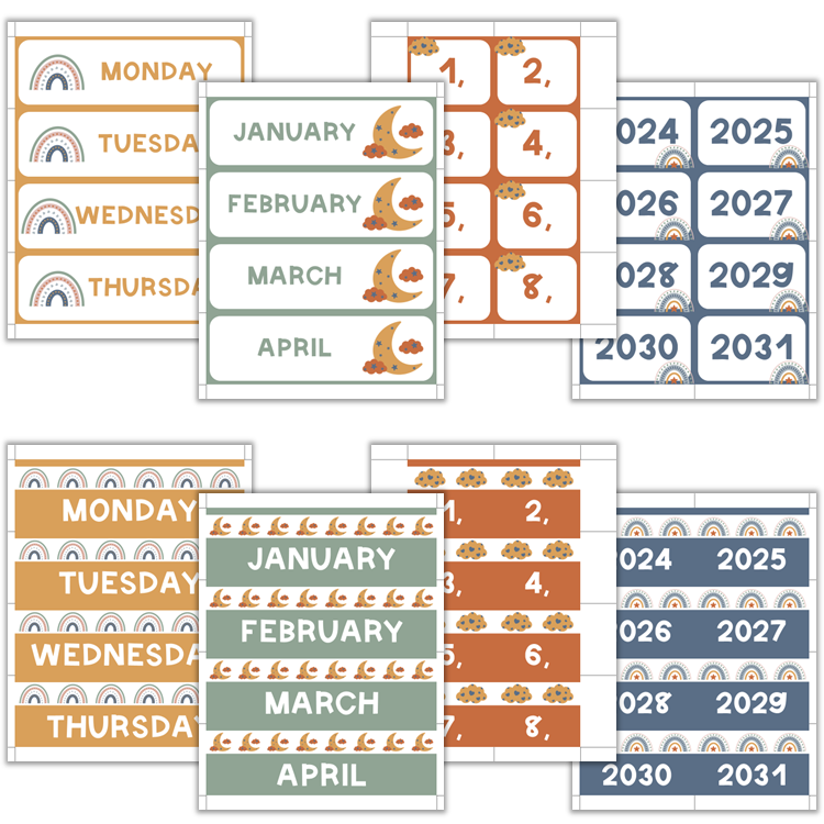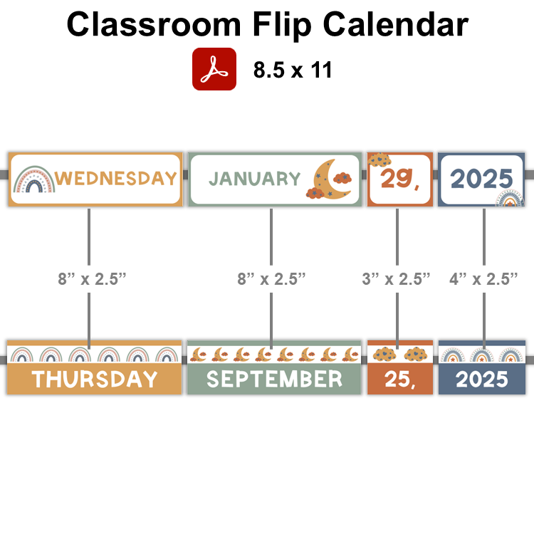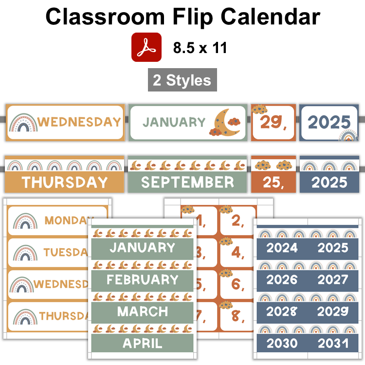This listing is for a ready-to-print set of Classroom Flip Calendar with Neutral Rainbow Theme.