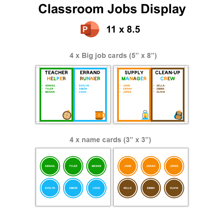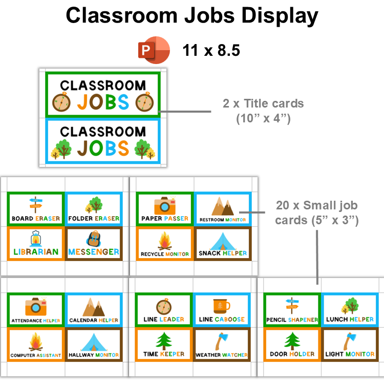 • 1 PowerPoint file containing an editable template of Classroom Jobs Display (10 pages).