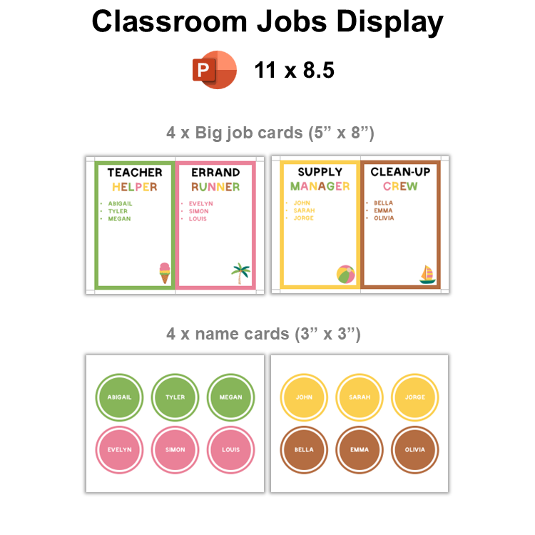 • 1 PowerPoint file containing an editable template of Classroom Jobs Display (10 pages).