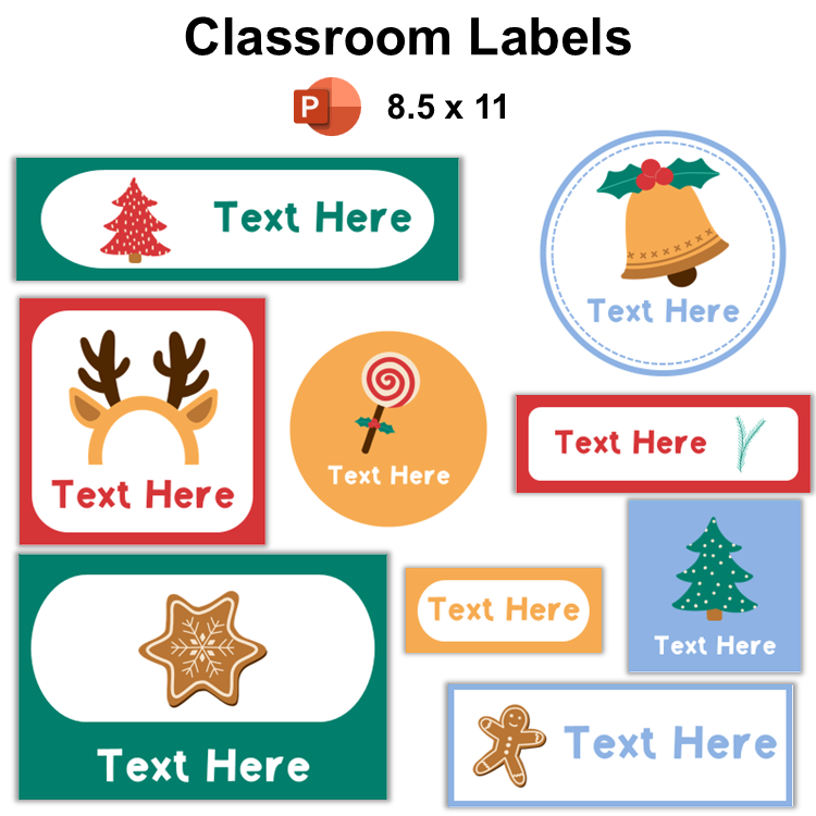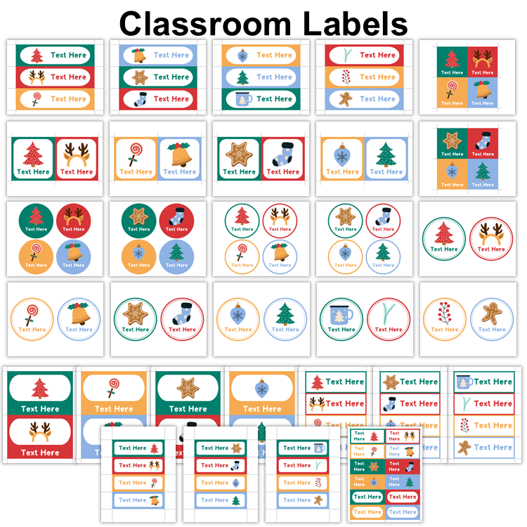 This listing is for an editable template of Classroom Labels with Bright Christmas Theme.