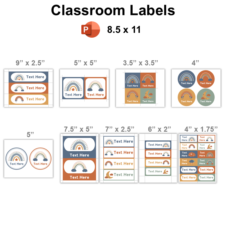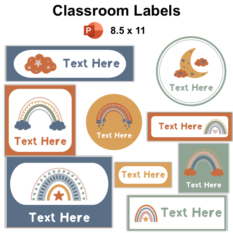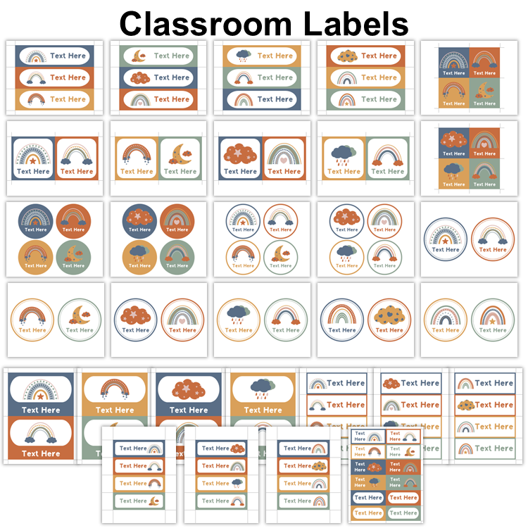 This listing is for an editable template of Classroom Labels with Neutral Rainbow Theme.