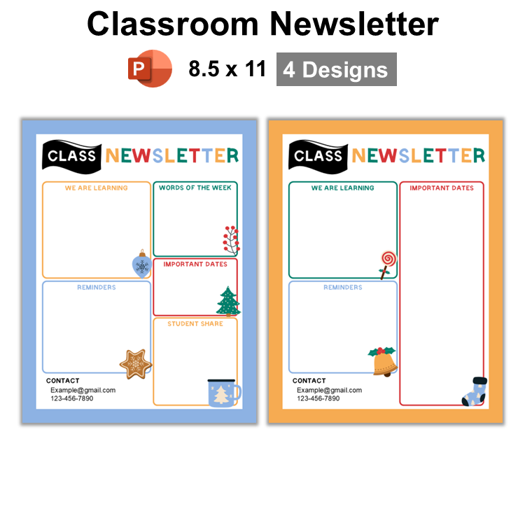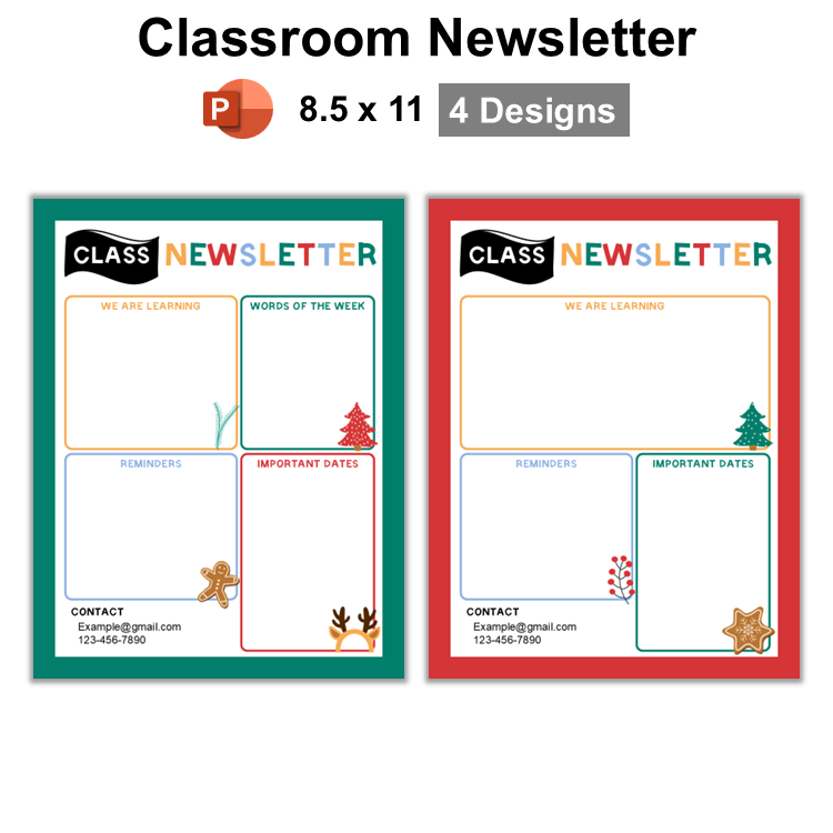• 1 PowerPoint file containing 4 class newsletter templates (4 Pages).