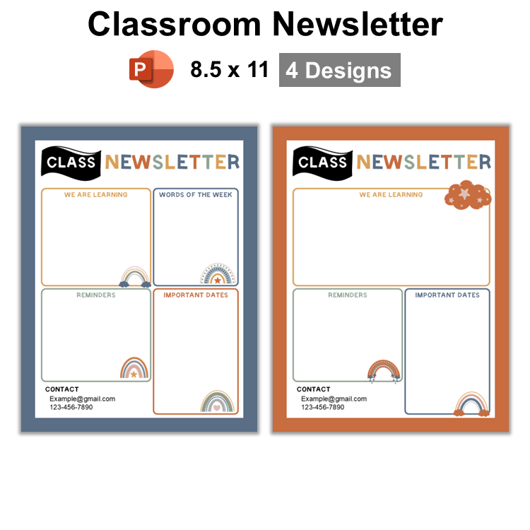 • 1 PowerPoint file containing 4 class newsletter templates (4 Pages).