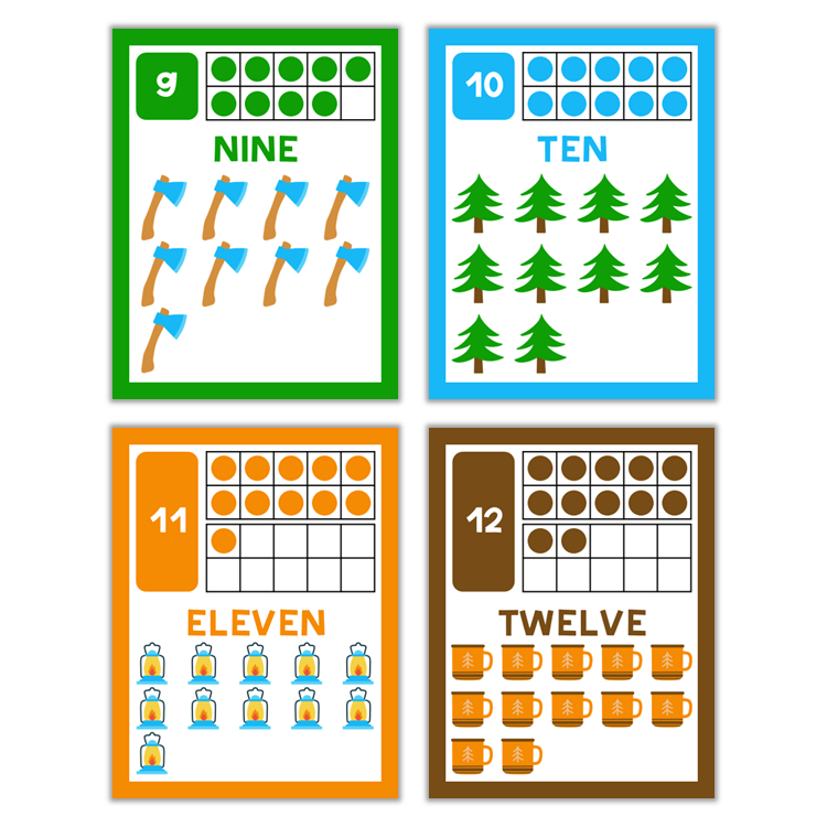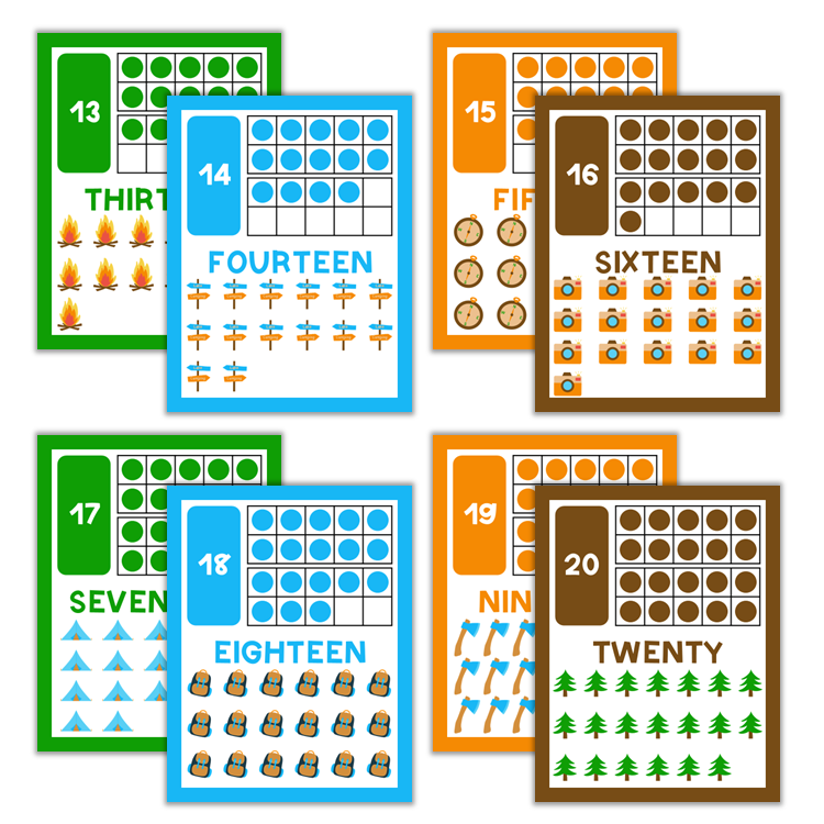 This listing is for a ready-to-print set of numbers 1-20 with Camping Theme.