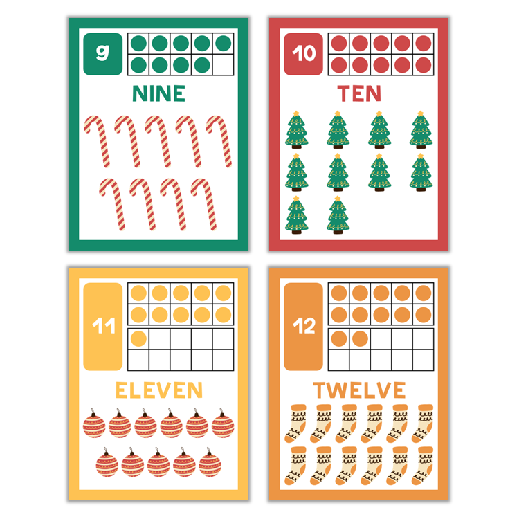 This listing is for a ready-to-print set of numbers 1-20 with Cute Christmas Theme.
