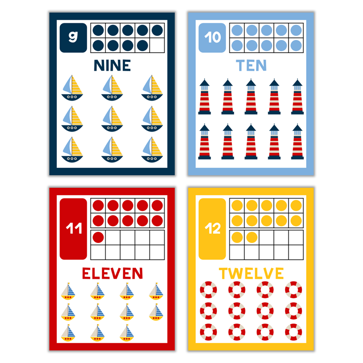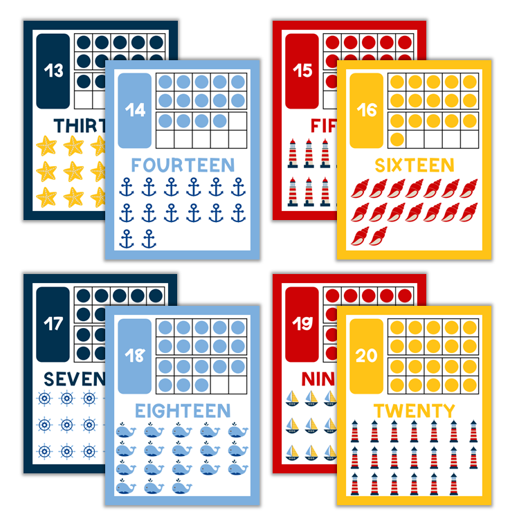 This listing is for a ready-to-print set of numbers 1-20 with Nautical Theme.