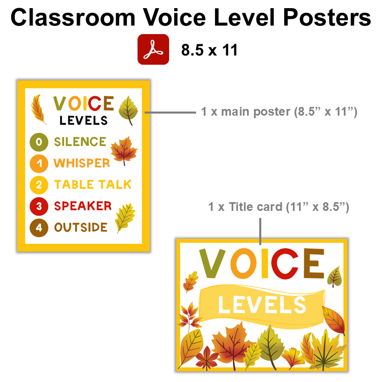 This listing is for a ready-to-print set of Classroom Voice Level Posters with Autumn Leaves Theme.
