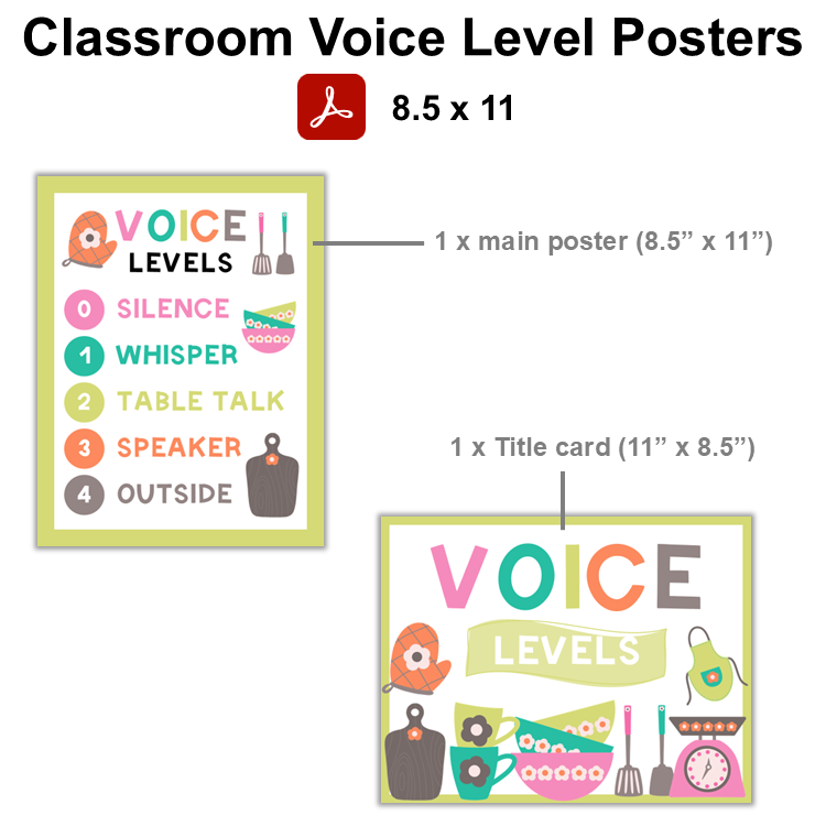 • 2 PDF file containing ready-to-print Classroom Voice Level Posters (5 Pages).