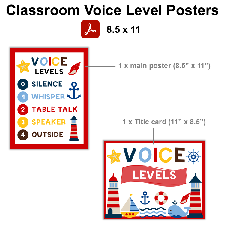 • 2 PDF file containing ready-to-print Classroom Voice Level Posters (5 Pages).