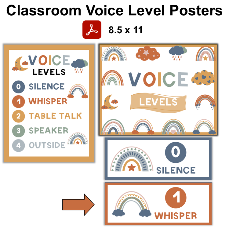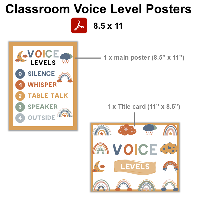 • 2 PDF file containing ready-to-print Classroom Voice Level Posters (5 Pages).